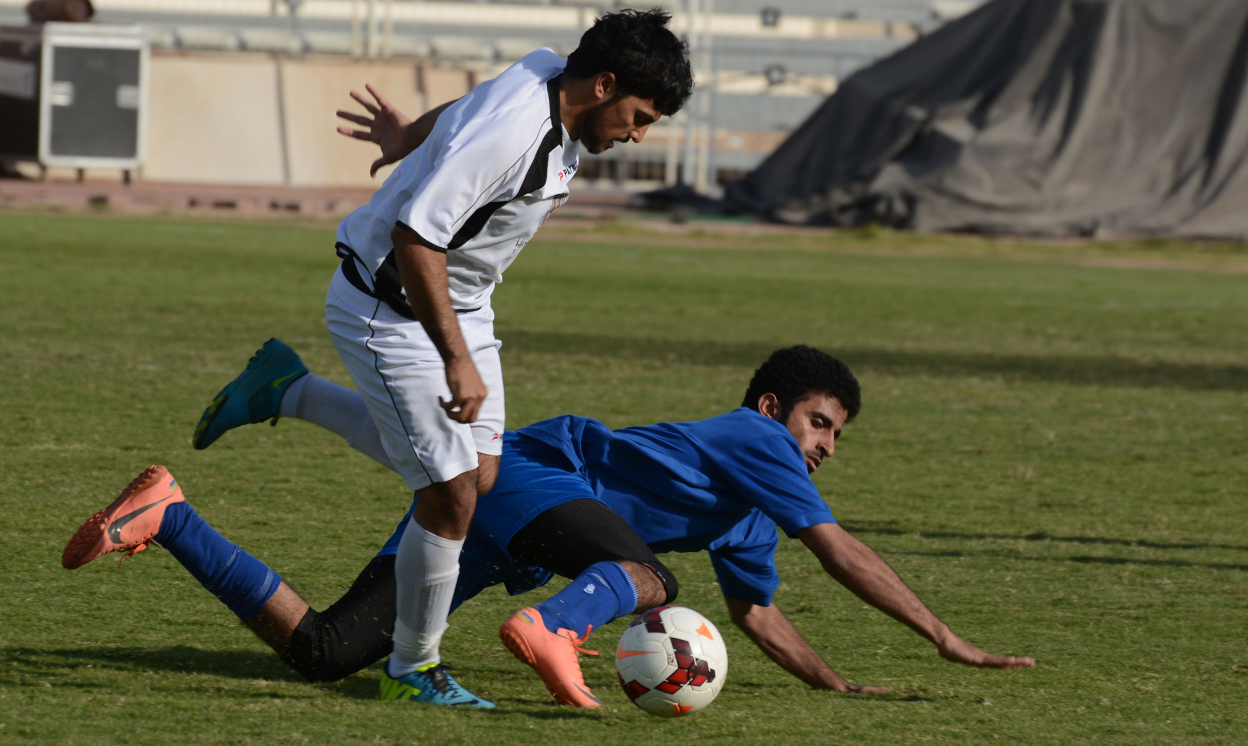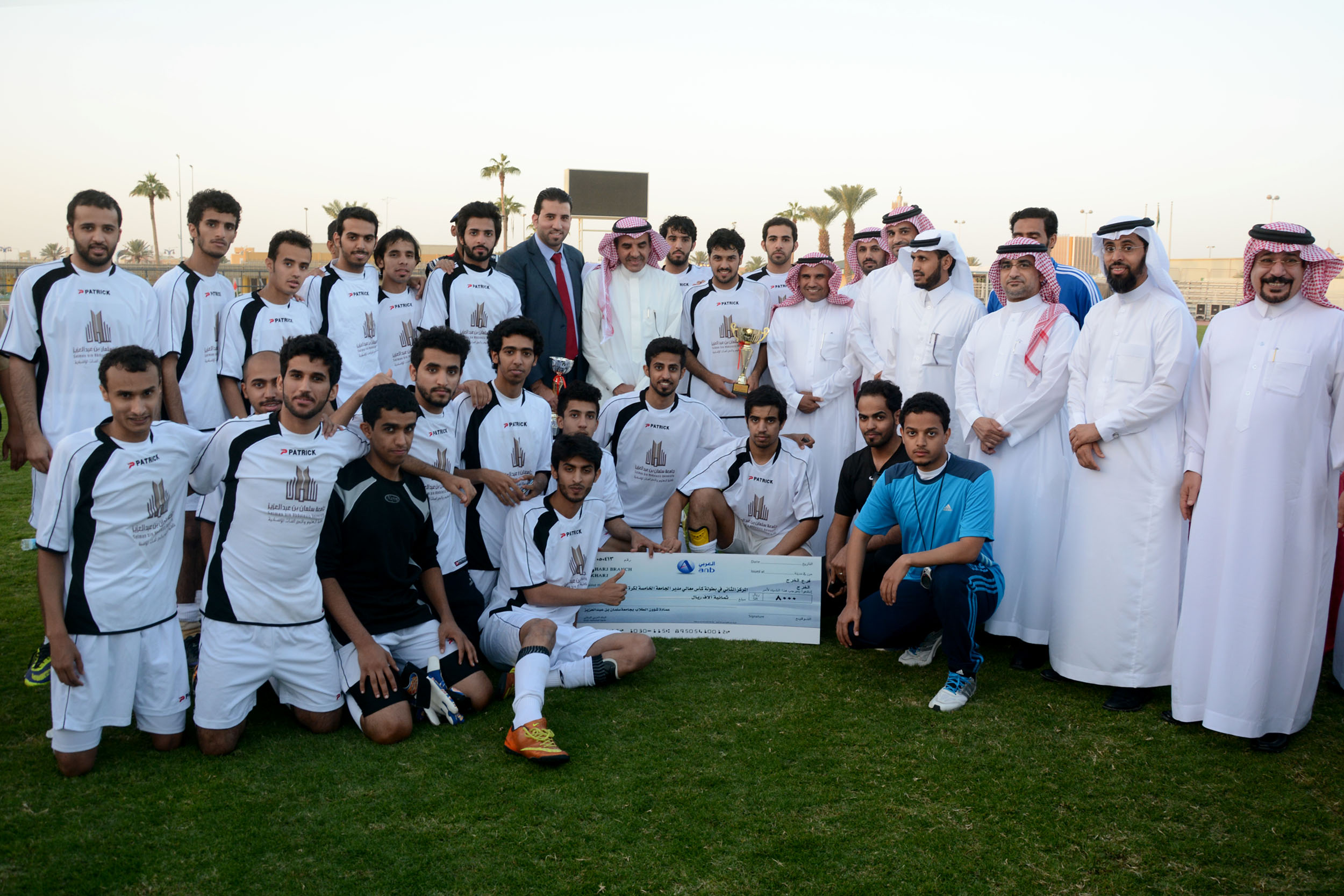 برعاية وحضور معالي مدير جامعة سلمان بن عبدالعزيز الدكتور عبدالرحمن بن محمد العاصمي أقامت عمادة شؤون الطلاب المباراة النهائية لبطولة كأس معالي مدير الجامعة الخامسة لكرة القدم والتي جمعت فريق كلية الآداب والعلوم بوادي الدواسر وفريق كلية العلوم والدراسات الإنسانية بالخرج وذلك عصر يوم الاثنين  الموافق 17/1/1436هـ على أرض ملعب نادي الشعلة بالخرج. بدء الشوط الأول من المباراة حيث كان المستوى الفني للفريقين متقارب إلى أن انتهى الشوط بالتعادل الإيجابي 1/1. انطلق الشوط الثاني بحماس واضح من كلا الفريقين حيث تمكن فريق الآداب بتسجيل الهدف الثاني , بعدها بوقت قليل تمكن فريق العلوم الانسانية بتحقيق التعادل , استمرت المباراة بالتعادل إلى أن حسمها فريق الآداب قبل نهاية المباراة بستجيله الهدف الثالث لتنتهي المباراة بفوز كلية الآداب والعلوم بوادي الدواسر 3/2 . سجل أهداف فريق الآداب والعلوم / هدف سجل عن طريق اللاعب جبران سالم كما سجل اللاعب شجاع الدوسري هدفان , أما بالنسبة لفريق العلوم الإنسانية / فقد سجل الهدف الاول اللاعب رائد عسيري والهدف الثاني راشد الربيع , حكم المباراة الحكم الدولي أبراهيم النفيسة. بعد انتهاء المباراة تقدم معالي مدير الجامعة الدكتور عبدالرحمن العاصمي للتكريم وهو على النحو التالي: 1- حكام البطولة وعلى رئسهم الحكم الدولي ابراهيم النفيسة. 3- جائزة أفضل منسق إداري بالبطولة والتي نالها الدكتور عمر الجوارنه من كلية العلوم والدراسات الإنسانية. 4- جائزة أفضل لاعب والتي حققها اللاعب محمد القحطاني من كلية العلوم والدراسات الانسانية بالخرج. بعدها سلم معاليه الميداليات الفضية لصاحب المركز الثاني في البطولة فريق كلية العلوم والدراسات الانسانية بالخرج ومكافئة مالية مقدارها ثمانية ألاف ريال. ومن ثم تقدم صاحب المركز الاول في البطولة فريق كلية الآداب والعلوم  بوادي الدواسر لاستلام الميداليات الذهبية وكأس البطولة مكافئة مالية قدرها عشرة ألاف ريال. حضر المباراة وكيل الجامعة الدكتور عبدالله الجمعة ووكيل الجامعة للشؤون التعليمية والأكاديمية الدكتور عبدالرحمن الخضيري وعميد شؤون الطلاب الدكتور مسفر الكبيري وبعض عمداء العمادات المساندة وعمداء الكليات ومدراء الإدارات.