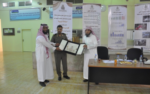 وبعد ذلك أجاب الرائد على مجموعة من الأسئلة والإستفسارات من الحضور , وفي نهاية المحاضرة تقدم الدكتور / عمر محمد دين بتسليم الرائد / فهد الدوسري درعاً تذكارياً شكراً وعرفاناً له لإقامته هذه المحاضرة , وثمنت عمادة شؤون الطلاب التعاون الدائم والمستمر من كلية المجتمع لإقامة هذه المحاضرة وغيرها من الأنشطه داخل أروقة الكلية .