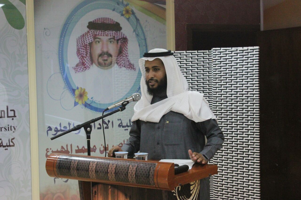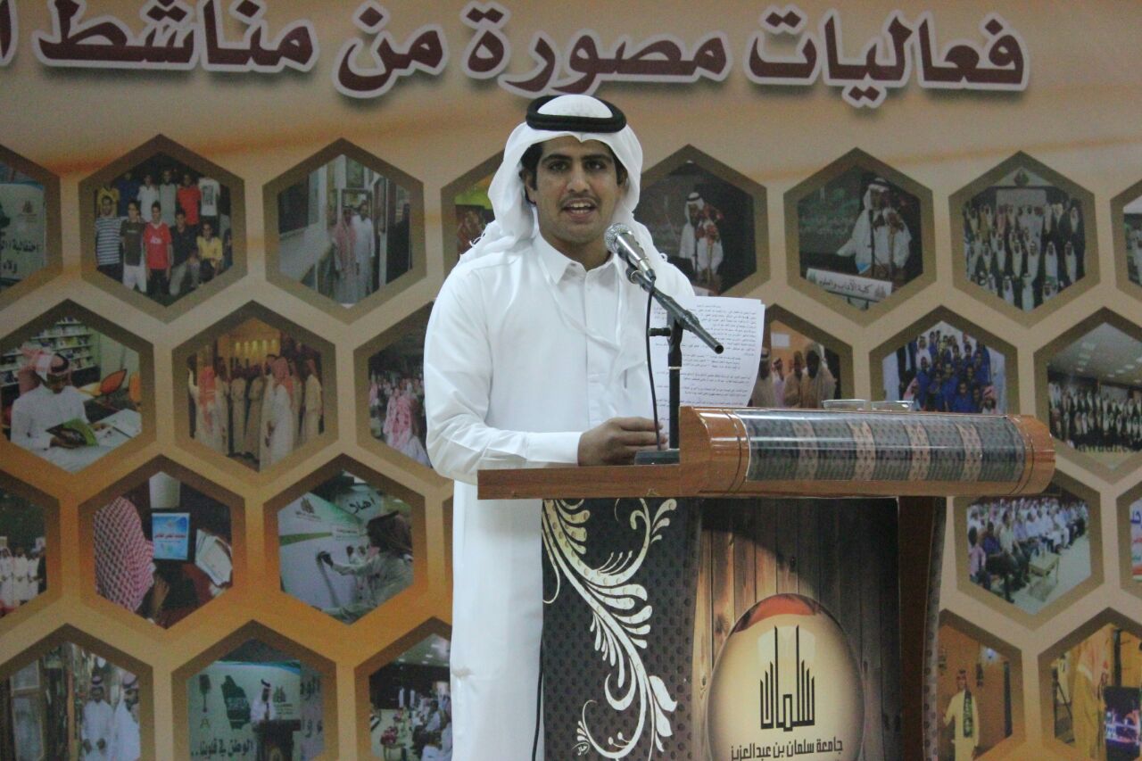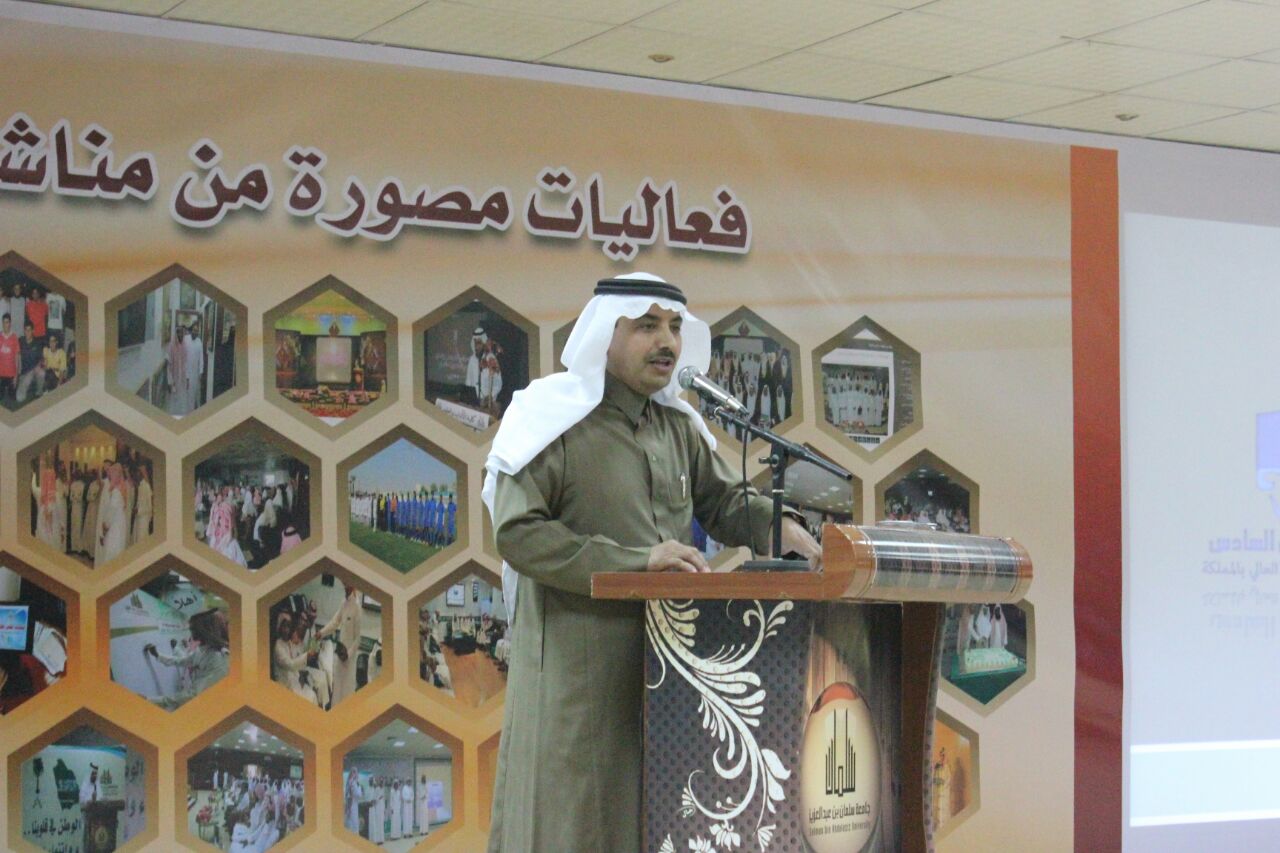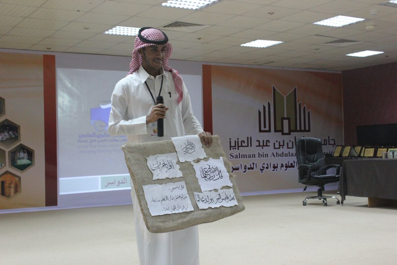 أقامت كلية الآداب والعلوم بوادي الدواسر ملتقى علمياً استعداداً للمشاركة في المؤتمر العلمي بالجامعة والوزارة، وذلك يوم الخميس الموافق 26صفر1436هـ، وقد حضره ورعاه من أعضاء اللجنة العليا كل من: سعادة الدكتور: ثلاب بن عبدالله الشكرة وكيل عمادة شؤون الطلاب، و سعادة الدكتور: سفر بن بخيت المدرع مساعد وكيل الجامعة للفروع، و سعادة الدكتور: عمر بن محمد دين الأمين العام للمؤتمر، و سعادة الأستاذ: جمال بن حمد الحمداء مساعد العميد لشؤون الأنشطة.كما رعاه وشرفه سعادة عميد كلية الآداب والعلوم الدكتور، ناصر بن محمد المهيزع، وسعادة وكيل الكلية الدكتور/ عبدالله بن محمد آل تميم، وأقيم الملتقى في مسرح الكلية، حيث تميز بالتنوع في الفقرات المعروضة لمحاور مختلفة للمؤتمر.وافتتح الملتقى بآيات من الذكر الحكيم، أعقبتها كلمة لعميد كلية الآداب الدكتور/ ناصر بن محمد المهيزع حيث أشار إلى العلم والمعرفة هي أساس حياة الإنسان وعماد مجتمعه وبلاده، وأن اهتمامه بتطوير مواهبه ومعارفه إيام دراسته بالجامعة له تأثير إيجابي على مستقبله.ثم ألقى منسق الكلية الأستاذ/ مسيب آل وافي كلمة شرح فيها الأعمال والبرامج التي أقامتها الكلية للتحضير لإقامة الملتقى والمشاركة في مؤتمر الجامعة والوزارة.بعد ذلك بدأ الطلاب المشاركين في الملتقى بعرض مشاركاتهم ومشاريعهم وأعمالهم العلمية والثقافية والفنية، حيث تميزت محاور الملتقى بالتنوع والإبداع في الإخراج الفني للفقرات، كما اشتملت على تحكيم ومناقشة علنية لبحث مشارك، وعرض فلمين وثائقيين، وابتكار، ومشروع ريادة أعمال، ومشروع خدمة مجتمعية، ومشاركات فنية في التصوير الضوئي والخط العربي.كما ألقى رئيس المجلس الطلابي كلمة بين فيها دور المجالس الطلابية في إقامة فعاليات الملتقى والبرامج المتلقة بالتحضير له.وقبل ختام الحفل ألقى سعادة الدكتور/ ثلاب الشكرة كلمة اللجنة العليا وضح فيها أن التحصيل العلمي والمعرفي لابد أن يترجم إلى واقع عملي ملموس في بحث علمي أو ابتكار أو مشروع ريادي أو خدمة مجتمعية أو غير ذلك حتى تنتفع به الأمة.وفي ختام الحفل تم تكريم الطلاب المشاركين الفائزين في مسابقات الملتقى بتقديم الجوائز النقدية والدروع التذكارية والشهادات التقديرية، كما تم تكريم فرق العمل واللجان العاملة في الكلية للتحضير للمؤتمر.