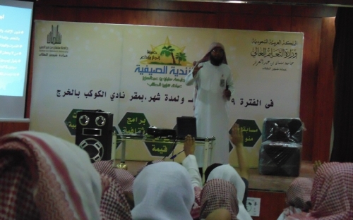 أقام النادي الصيفي الأول بالخرج يوم الثلاثاء الموافق 23-8-1434 دورة تدريبية بعنوان : فنون الإلقاء والتحدث، قدمها مدير النادي الدكتور / عمر بن محمد دين، على مسرح نادي الكوكب، وقد تعرض مقدم الدورة لمجموعة من الفنون والاستراتيجيات التي ينبغي لمن يرغب في إجادة فن الإلقاء أن يتقيد بها، وأشار أيضاً إلى بعض الطرق والأساليب التي تمكنه من الإتقان والتميز في الإعداد للموضوع والتحضير له، والاستعداد للوقوف أمام الجمهور وإقناعهم والتأثير فيهم.
