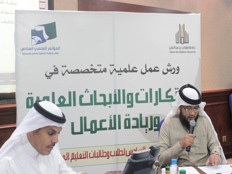 ضمن مرحلة التدريب للطلاب وتأهيل المشاركات والمشاريع المقدمة للمؤتمر العلمي السادس بالجامعة ووزارة التعليم العالي بالمملكة أقامت أمانة المؤتمر العلمي بعمادة شؤون الطلاب ورشة عمل علمية متخصصة في ريادة الأعمال بعنوان (مشاريع ريادة الأعمال والتحدي في عالم الاستثمار) استضافت فيها رئيس لجنة التحكيم في محور ريادة الأعمال في المؤتمر سعادة الدكتور/ سعود بن لافي السبيعي العنزي مدير مركز الأمير سلمان لريادة الأعمال بجامعة الملك سعود بالرياض، وقدمها الدكتور/ عمر بن محمد دين الأمين العام للمؤتمر، وذلك يوم الأحد 8/2/1436هـ، الطلاب في قاعة التدريب بإدارة الجامعة، والطالبات في قاعة مبنى الهداية، كما حضرها مجموعة من طلاب وطالبات كليات الحوطة ووادي الدواسر حيث شاهدوا الورشة عن طريق البث المباشر على موقع لايف ستريم على الرابط (http://www.livestream.com/sau_edu). وتم مناقشة أربع وعشرين مشروعاً في ريادة الأعمال مقدمة للمنافسة في المؤتمر العلمي السادس بوزارة التعليم العالي وبالجامعة.وفي بداية الورشة قدم الأمين العام للمؤتمر كلمة وجه فيها الطلاب والطالبات إلى ضرورة الاهتمام في المرحلة المقبلة بإجادة المشاركات من حيث جمع الجيد من المواد العلمية وحسن التنسيق والترتيب والصياغة، والإجادة في الإخراج الفني للأبحاث والمشاريع والمشاركات، وأكد في كلمته على ضرورة الاطلاع على الشروط والضوابط المقررة من إدارة المؤتمر بالوزارة المقننة لجميع المحاور المتاحة للمنافسة فيها.بعد ذلك ألقى سعادة الدكتور سعود السبيعي عرضاً موجزاً عن مشاريع ريادة الأعمال وطريقة إعدادها والمراحل التي تمر بها المشاريع ابتداء من الفكرة وحتى التطبيق والتنفيذ على أرض الواقع، كما تطرق إلى كيفية تحديد الميزانيات المالية ودراسات الجدوى للمشاريع الجيدة، وذكر في حديثه مواصفات المشاريع الحديثة والمبدعة في عالم الاستثمار في العصر الحديث، ووضح الطرق والوسائل التي تسهم في إخراج مشاريع الريادة بشكل مشرق ومنافس على مستوى المؤتمر.ثم بدأ الدكتور عمر والدكتور سعود بمناقشة المشاريع المقدمة من الطلاب والطالبات لإبداء وجهات النظر حول تقويم المشاركة وتحسينها وتأهيلها للمنافسة على مستوى المملكة، كما تم توجيه الأفكار والاطروحات وتقويم الأهداف وطرق التنفيذ، وإيجاد الحلول المناسبة للعوائق التي تواجه الطلبة عند إعدادهم لمشاريعهم وتنفيذها، حيث كان النقاش قوياً وجيداً ومثمراً استفاد منها الطلبة في توجيه مشاريعهم وتحسين إخراجها، علماً بأن طالبات محافظات الحوطة ووادي الدواسر تم مناقشتهم عبر الاتصال الهاتفي.هذا وقد ساند في تنفيذ الورشة من عمادة شؤون الطلاب الأستاذ عمر العبدالله، والأستاذ محمد مبخوت، والأستاذ فيصل القحطاني، ومن الطلاب المساندين لأمانة المؤتمر العلمي الطالب أحمد خميس بهيان، وأشرف على النقل المباشر والأمور التقنية الطالب محمد ممدوح سابق.كما كان في الإشراف والمتابعة للطالبات في القسم النسائي سعادة وكيلة العمادة لشؤون الطالبات الدكتورة دلال المطرفي، وعضو اللجنة العليا للمؤتمر الدكتورة/ إيمان أبوسليم، كما ساهم في التنظيم الأستاذة فاطمة آل غرير والأستاذة سارة العميرة والأستاذة أميرة العسرج.