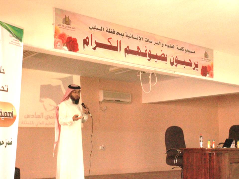 قام أمين المؤتمر العلمي الدكتور عمر بن محمد دين بزيارة لكلية العلوم والدراسات الإنسانية بالسليل للتعريف بالمؤتمر، حيث أقامت الكلية لقاءً تعريفياً حضره سعادة وكيل الكلية الدكتور فالح الفاعور وأعضاء هيئة التدريس ومجموعة من الطلاب، وذلك يوم الاثنين الموافق 26/12/1435هـ.وقد عرف د. عمر بالمؤتمر وما ترغب فيه الجامعة من تحقيق مجموعة من الأهداف في المشاركة في مثل هذه المؤتمرات كرعاية مواهب الطلاب وتطوير قدراتهم واستثمار طاقاتهم وبناء شخصياتهم، كما تهدف كذلك إلى بناء فرق العمل وتطوير أداء إدارات الأنشطة الطلابية في التنظيم والإعداد للفعاليات والبرامج.وأشار في كلمته إلى الجوائز المرصودة من قبل عمادة شؤون الطلاب للفائزين والمتميزين في منافسات المؤتمر، والتي تبلغ إجماليها أكثر من مائتي ألف ريال.ووضح كذلك طريقة مشاركة الطلاب في المؤتمر، وبيّن أهمية متابعة الطلاب للموقع المخصص للمؤتمر على صفحة الجامعة، وكذلك المتابعة المستمرة لمنسق الكلية والمشرف عند إعداد المشاركة، متمنياً لطلاب كلية السليل دوام التقدم والتألق في مشاركاتهم.