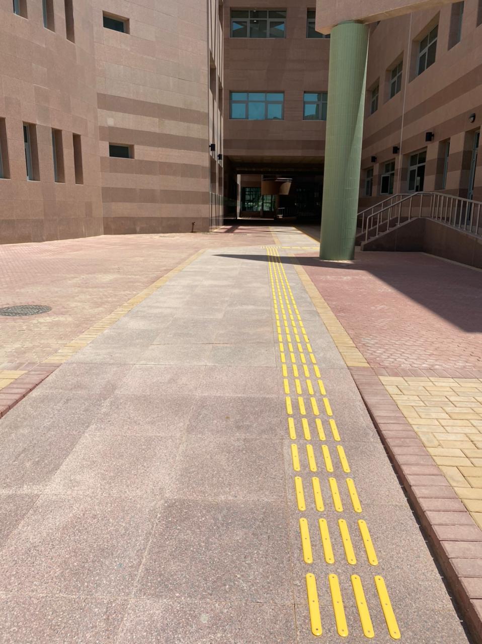 من جانبه أكد وكيل عمادة شؤؤن الطلاب للشؤون الفنية أنه تم إنجاز أكثر من ٨٠٪ من تنفيذ مشروع الوصول الشامل في الحرم الجامعي والذي متوقع الانتهاء منه بداية العام الدراسي القادم. وأشار إلى أن المشروع يشمل مسارات للمكفوفين وتوفير خرائط ناطقة ولوحات بلغة "برايل" في ثلاث كليات وتوفير مواقف سيارات لذوي الإعاقة وأبواب إلكترونية وتهيئة المنزلقات ودورات المياه والمصاعد في جميع الكليات.