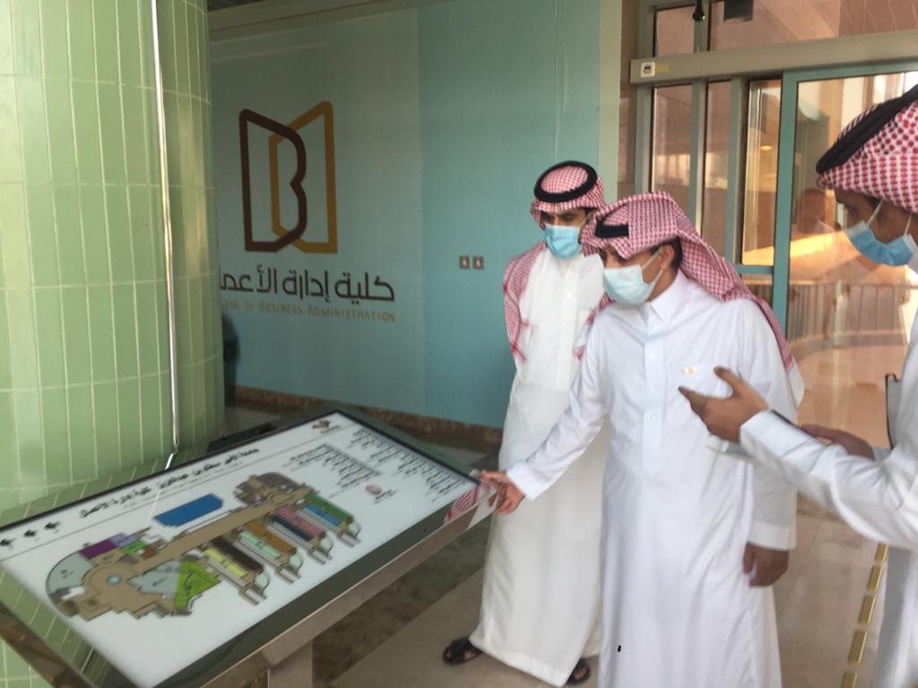 قام سعادة عميد شؤون الطلاب الدكتور ثلاب بن عبدالله الشكرة بصحبة وكيل عمادة شؤؤن الطلاب للشؤون الفنية والمشرف على وحدة ذوي الإعاقة الدكتور خالد ناصر العاصم ويرافقهم المهندس عمر الحربي من الإدارة العامة للمشاريع بزيارة لمواقع تنفيذ مشروع الوصول الشامل في البيئة العمرانية في الحرم الجامعي والاطلاع على لوحة الخرائط الإرشادية الناطقة التي تم تركيبها مؤخراً. وأكد عميد شؤون الطلاب أن هذه اللوحة ستخدم طلاب ومنسوبي الجامعة المكفوفين وتساعدهم في التنقل باستقلالية.
