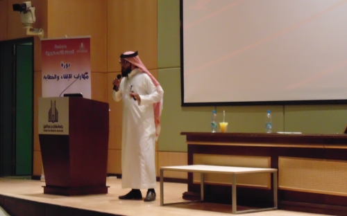 ضمن البرامج المشتركة بين القسم الثقافي والاجتماعي بعمادة شؤون الطلاب وعمادة السنة التحضيرية قدم الدكتور عمر محمد دين المستشار بعمادة شؤون الطلاب دورة مهارية تدريبية بعنوان مهارات الإلقاء والخطابة، وذلك في مسرح كلية العلوم والدراسات الإنسانية، يوم الاثنين 20/5/1434هـ، ويوم الأربعاء 22/5/1434هـ.