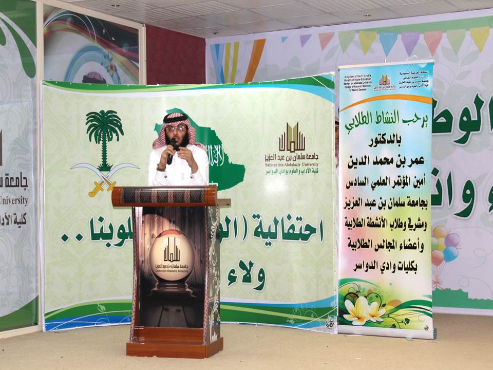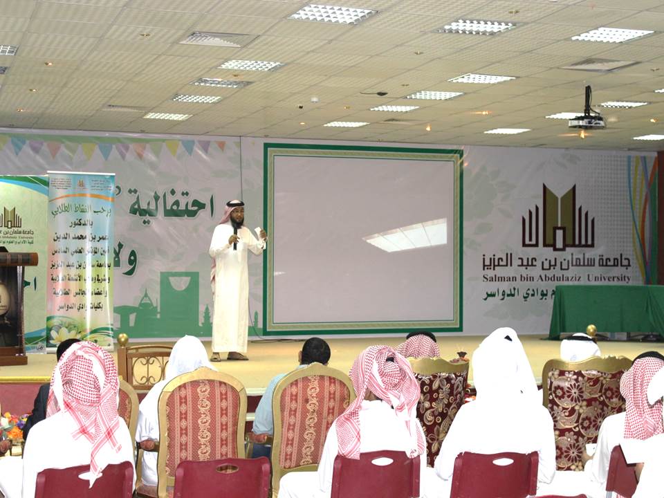 أقامت عمادة شؤون الطلاب ممثلة في أمانة المؤتمر العلمي حملة تعريفية للتعريف بالمؤتمر في كليات وادي الدواسر، حيث أقيم لقاء تعريفي لجميع كليات الوادي للبنين في مسرح كلية الآداب والعلوم، وذلك يوم الثلاثاء الموافق 27/12/1435هـ.وقد افتتح اللقاء بآيات من الذكر الحكيم، تلا ذلك كلمة لسعادة وكيل كلية الآداب الدكتور/ عبدالله آل تميم أشار فيها إلى أهمية مشاركة الطلاب في هذا المؤتمر لما له من الفوائد الجيدة في تطوير مستوى الطلاب العلمي والثقافي والإبداعي.أعقب ذلك كلمة أمين المؤتمر العلمي الدكتور عمر بن محمد دين، شرح فيها بالتفصيل ماهية المؤتمر وأهدافه ومحاوره وطريقة المشاركة فيه، والجوائز المرصودة للطلاب في المؤتمر من قبل عمادة شؤون الطلاب أو من وزارة التعليم العالي.كما وضح في كلمته أن من ضمن أهداف المشاركة في هذا المؤتمر بناء شخصية الطالب وقدراته وصقل مواهبه ليتخرج بعد إتمامه المتطلبات التعليمية إنساناً مؤهلاً للتربية والتعليم والقيادة والإبداع.كما تستهدف أمانة المؤتمر العلمي في التنظيم والإعداد للمؤتمر بناء فرق العمل وإكسابهم المهارة الكافية لتنظيم اللقاءات والبرامج والفعاليات، والإعداد للدورات وورش العمل، وذلك عائد على الجامعة بالفوائد الكثيرة عند التنظيم والإعداد للفعاليات خارج إطار المؤتمر.واختتم د. عمر حديثه بشكر سعادة وكيل كلية الآداب الدكتور عبدالله آل تميم على رعايته للقاء، كما شكر جميع منسقي المؤتمر في كليات الوادي على إعدادهم وتنظيمهم للقاء متمنياً لهم الإبداع والتألق في مشاركتهم في مؤتمر هذا العام.وقد رافق الدكتور عمر وسانده في التنسيق لإقامة هذا اللقاء الموظف عبدالله مضحي العنزي من عمادة شؤون الطلاب.