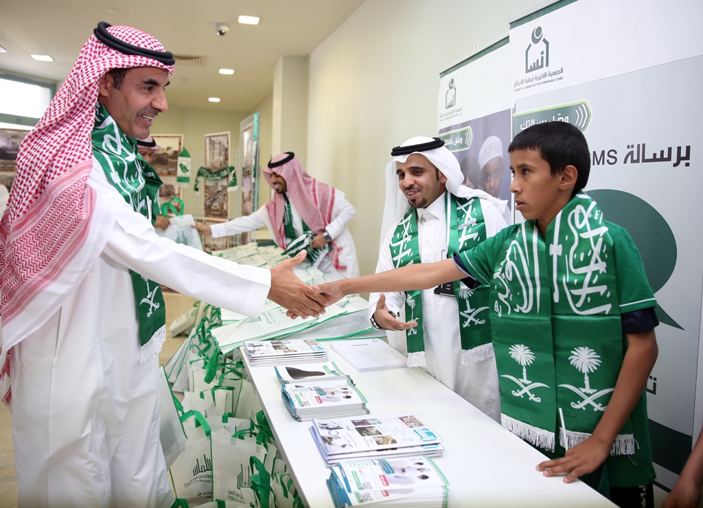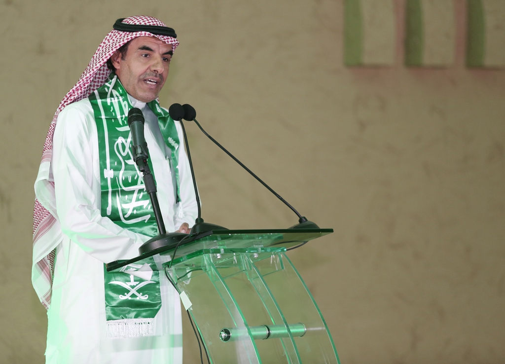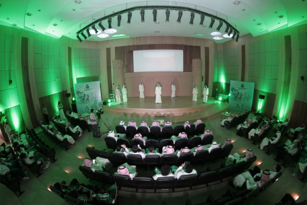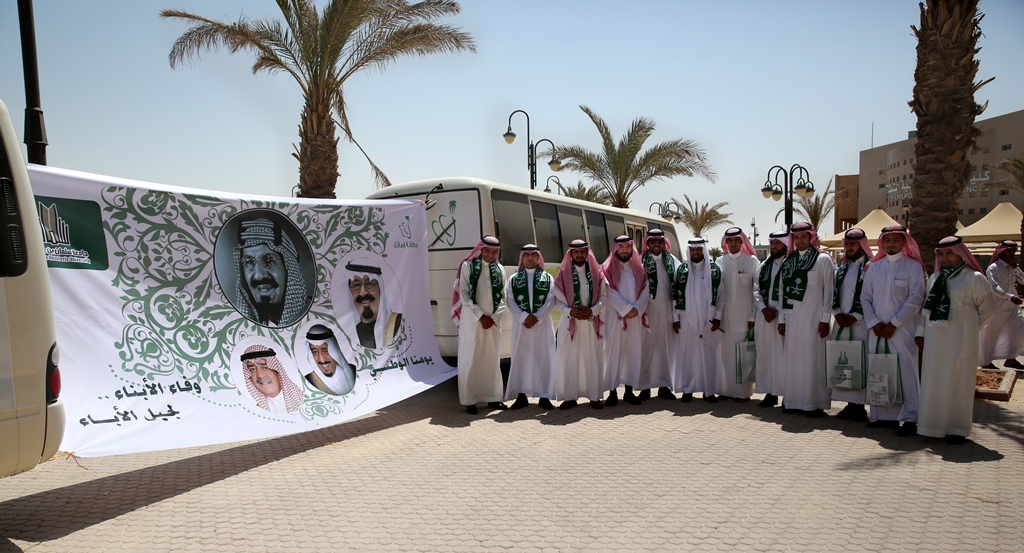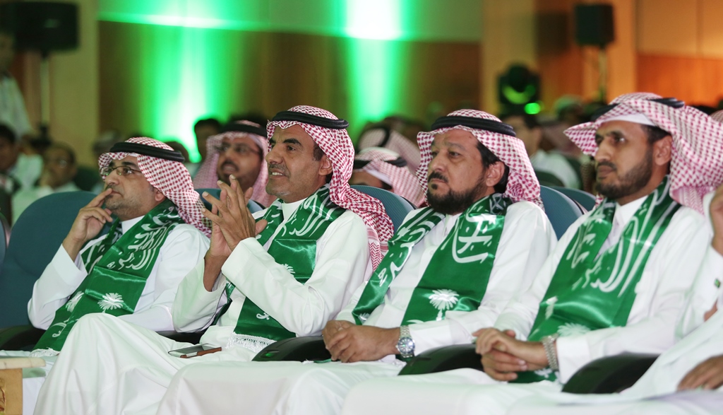 برعاية معالي مدير الجامعة الدكتور عبدالرحمن بن محمد العاصمي احتفلت جامعة سلمان بن عبد العزيز ممثلة بعمادة شؤون الطلاب باليوم الوطني الرابع والثمانين للمملكة من خلال برنامج ثقافي منوع ، صباح اليوم الاثنين ، وبحضور عدد من الوكلاء والعمداء وجمع كبير من طلاب ومنسوبي الجامعة، في مسرح الجامعة بالمدينة الجامعية.ففي بداية الحفل قام معالي المدير بقص شريط التدشين لمعرض الصور القديمة المصاحب للحفل والذي اشتمل على بعض الصور الفوتوغرافية القديمة والنادرة، للملك عبد العزيز طيب الله ثراه وعدداً لصور مدن المملكة قديماً.عقبها بدأ الحفل الخطابي المعد بآيات عطره من الذكر الحكيم، ثم ألقى عميد شؤون الطلاب الدكتور مسفر بن محماس الكبيري كلمة رفع من خلالها اسمى آيات التهاني والتبريكات إلى مقام خادم الحرمين الشرفين وولي عهده الأمين وإلى الأسرة الحاكمة وإلى الشعب السعودي الكريم بمناسبة اليوم الوطني المجيد ،هذا اليوم الأغر والذي نحتفل به اليوم جميعاً مع طلابنا الذين أرادوا في هذه المناسبة أن يستعيدوا أمجاد هذا الوطن الغالي على قلوبنا، وفي ختام كلمته قدم شكره لمعالي مدير الجامعة على دعمه المعنوي والمالي اللامحدود لأنشطة عمادة شؤون الطلاب.بعد ذلك إنطلق الأوبريت الإنشادي الذي تضمن عرضاً لفضل هذه البلاد والنعم التي خصها الله بها، كما تطرق الأوبريت الى نشأة المملكة العربية السعودية على يد مؤسسها المغفور له بإذن الله الملك عبدالعزيز بن عبدالرحمن آل سعود طيب الله ثراه، مروراً بالحديث عن النهضة المعاصرة التي تشهدها البلاد.بعد ذلك ألقى معالي مدير الجامعة الدكتور عبدالرحمن بن محمد العاصمي كلمة بهذه المناسبة قال فيها إن هذه المناسبة الوطنية المباركة التي نحتفل به جميعاً ونتذكر إنجاز التوحيد والملحمة البطولية التي وحدت أرجاء شبه الجزيرة تحت راية التوحيد وأصبحنا في أمن ورخاء ونمو وتطور ، فبأسمى وباسم كافة منسوبي الجامعة وطلابها نتقدم بأجمل التهاني والتبريكات إلى مقام خادم الحرمين الشرفين الملك عبدالله بن عبد العزيز وإلى سمو ولي عهده الأمين وسمو ولي ولي العهد حفظهم الله بمناسبة هذا اليوم الوطني ،ونسأل الله أن يعيده علينا وبلدنا في تقدم وتطور واستقرار وهذا ما نلمسه في وقتنا الحاضر من دعم كبير للتعليم العالي والتوسع غير المسبوق للجامعات مما سنلمس أثره على نهضة بلادنا نسأل الله أن يديم علينا الأمن والأمان ، وفي ختام كلمته أوصى الطلاب بالمحافظة على هذه النعمة والعمل بجد وإخلاص للمساهمة في بناء هذا الوطن الذي اعطانا الكثير.وفي ختام الحفل قام معاليه بتكريم ابناء جمعية انسان المشاركين في احدى فقرات الحفل, ثم دشن معاليه قافلة جامعة سلمان المشاركة في احتفالات اليوم الوطني بمحافظة الخرج.