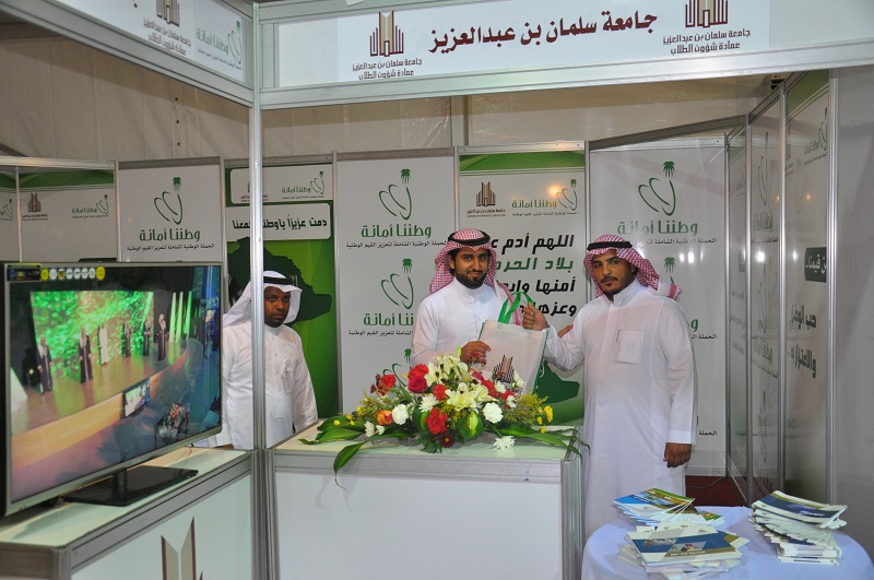 تشارك جامعة سلمان بن عبدالعزيز في معرض (وطننا امانه) المصاحب لفعاليات مهرجان صيف الخرج35 والذي تنظمه بلدية محافظة الخرج ، افتتح المعرض سعادة محافظ محافظة الخرج الاستاذ شبيلي بن مجدوع ال مجدوع مساء يوم الخميس الموافق 7/8/1435 ومن ثم قام بجولة على اركان المعرض و استمع سعادته لشرح عن محتوى ركن الجامعة من مطبوعات والخدمات المقدمة وما انجزته الجامعةوااعمل التى قامت به في تفعيل الحملة الوطنيةالشاملة قدمه له الاستاذ راشد العسكر.الجدير بالذكر ان المعرض يستمر لمدة خمسة عشر يوما حيث تشارك به جميع الدوائر الحكومية بمحافظة الخرج يعرض فيه الخدمات التي تقدمها تلك الدوائر وما تم انجازه من قبلهم في تفعيل الحملة الوطنية الشاملة ودورهم في تحقيق التي وجه بتنظيمها خادم الحرمين الشريفين ويأشرف من امير منطقة الرياض صاحب السمو الملكي الامير تركي بن عبدالله بن عبدالعزيز ودورهم في تحقيق أهدافها المرجوة والتي تطمح لها حكومتنا الرشيدة.