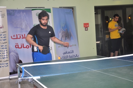 في اليوم الثاني من بطولة الجامعة لتنس الطاولة والتي تنظمها عمادة شؤون الطلاب يوم الاثنين الموافق 20/11/1435هـ لعب في اللقاء الأول على مستوى الفردي فريق كلية الطب ضد فريق السنة التحضيرية وانتهت بفوز كلية الطب وتأهلها للنصف النهائي.وفي المباراة الثانية لعب فريق ملية العلوم والدراسات الانسانية بالخرج مع فريق كلية الصيدلة انتهت بفوز الأول , وقد كان في اللقاء الثالث من نفس اليوم فريق كلية إدارة الاعمال بالخرج مع كلية إدارة الاعمال بحوطة بني تميم انتهت بتأهل اعمال الخرج الى النصف النهائي من البطولة.وفي اليوم الثالث من البطولة وعلى مستوى الفردي التقاء فريق كلية الهندسة بالخرج مع كلية العلوم الانسانية بالخرج انتهت بفوز الاول وتأهل للنصف النهائي , كما كان في اللقاء الثاني فريق كلية ادارة الاعمال مع فريق كلية العلوم الانسانية بالأفلاج انهت بفوز الانسانية وتأهلها الى نصف نهائي الفردي , كما تأهل فريق العلوم الانسانية بالخرج في دوري الزوجي الى نصف النهائي على حساب كلية الهندسة.كما اجريت مباراة في دوري الزوجي بين فريق كلية العلوم الانسانية بالخرج والعلوم الانسانية بالأفلاج انتهت بفوز العلوم الانسانية بالخرج الى نهائي البطولة على مستوى الزوجي.اما في دوري الفردي فقد لعب فريق كلية الهندسة ضد كلية العلوم والدراسات الانسانية بالأفلاج انتهت بفوز الاول وتأهله الى نهائي دوري الفردي