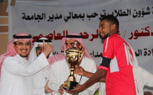 توج معالي مدير جامعة سلمان بن عبدالعزيز الدكتور عبدالرحمن العاصمي كلية العلوم والدراسات الانسانية بالافلاج بطلا لبطولة معاليه لكرة في نسختها الثالثه ، وذلك في المباراة النهائية التي جمعت فريق كلية العلوم والدراسات الانسانيه بالافلاج وفريق كلية المجتمع بالخرج وذلك عصر يوم الثلاثاء الموافق1434/1/6 على ارض ملعب نادي الكوكب بالخرج ، حيث انتهى الشوطان بالتعادل السلبي ، وبذلك احتكم الفريقان الى ركلات الترجيح التي انتهت بفوز كلية العلوم والدراسات الانسانيه 3/4 ،حكم المباراة الحكم مطرف القحطاني. وبعد ذلك كرم معالي مدير الجامعة حكام البطولة ، والفريق الحائز على المركز الثاني ، وبعدها سلم كاس البطولة لفريق كلية العلوم والدراسات الانسانيه بالافلاج. حضر المباراة وكيل الجامعة للشؤون التعليمية والاكاديمية د.صالح القحطاني ووكيل الجامعة للدراسات العلياء والبحث العلمي ا.د عوض الاسمري وعميد شؤون الطلاب د.مسفر بن محماس الكبيري وعدد من عمداء الكليات ومنسبي الجامعة ورئيس نادي الكوكب الاستاذ دباس الدوسري الذي سلم معالي مدير الجامعة الدكتور عبدالرحمن العاصمي العضوية الشرفية لنادي الكوكب.