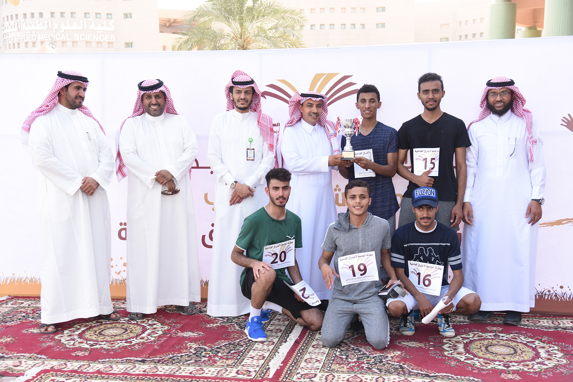 حققت كلية العلوم والدراسات الإنسانية بالخرج المركز الأول في بطولة الجامعة الثالثة لاختراق الضاحية التي نظمتها عمادة شؤون الطلاب اليوم الثلاثاء 14 /2/ 1440 هـ وبمشاركة عشرة كليات داخل المدينة الجامعية بمحافظة الخرج , حيث أنطلق السباق الممتد من أمام المدخل الرئيس لكلية الطب وأخذ جولة كاملة حول محيط المدينة الجامعية من الخارج. وتوج عميد شؤون الطلاب الدكتور ثلاب بن عبدالله الشكرة الفرق الفائزة بحصول كلية العلوم والدراسات الإنسانية بالخرج على المركز الأول , وكلية التربية بالخرج على المركز الثاني , والسنة التحضيرية على المركز الثالث. وعلى المستوى الفردي حقق الطالب سالم الظهير من السنة التحضيرية المركز الأول , كما حقق الطالب علي عسيري من كلية العلوم والدراسات الإنسانية بالخرج المركز الثالث , وحقق المركز الثالث الطالب ريان العامر من كلية العلوم والدراسات الإنسانية بالخرج. كما حقق المركز الرابع الطالب ياسر العبدان من كلية الصيدلة وحقق المركز الخامس محمد يوسف الشايجي من كلية العلوم والدراسات الإنسانية بالخرج , والمركز السادس الطالب تركي سلطان عقيلي من كلية هندسة وعلوم الحاسب , والمركز السابع الطالب سعيد الوادعي من كلية العلوم الطبية التطبيقية , والمركز الثامن الطالب عبدالرحمن الشميمري من كلية التربية , كما حقق المركز التاسع الطالب بندر المربي من كلية العلوم والدراسات الإنسانية بالخرج , المركز العاشر سلمان الدوسري من كلية العلوم والدراسات الإنسانية بالأفلاج. وفي ختام البطولة كرم الدكتور ثلاب الشكرة الطاقم التحكيمي للبطولة المكلف من إدارة التعليم بمحافظة الخرج  تعاون منها والذي كان له الأثر الكبير في إنجاح البطولة. حضر البطولة وكيل عمادة شؤون الطلاب للخدمات الطلابية الدكتور عبدالله بن سعود الشتيلي , ومساعد عميد شؤون الطلاب للأنشطة الطلابية الأستاذ جمال الحمداء , ومدير إدارة الأمن بالجامعة الأستاذ سعود بن علي القحطاني.