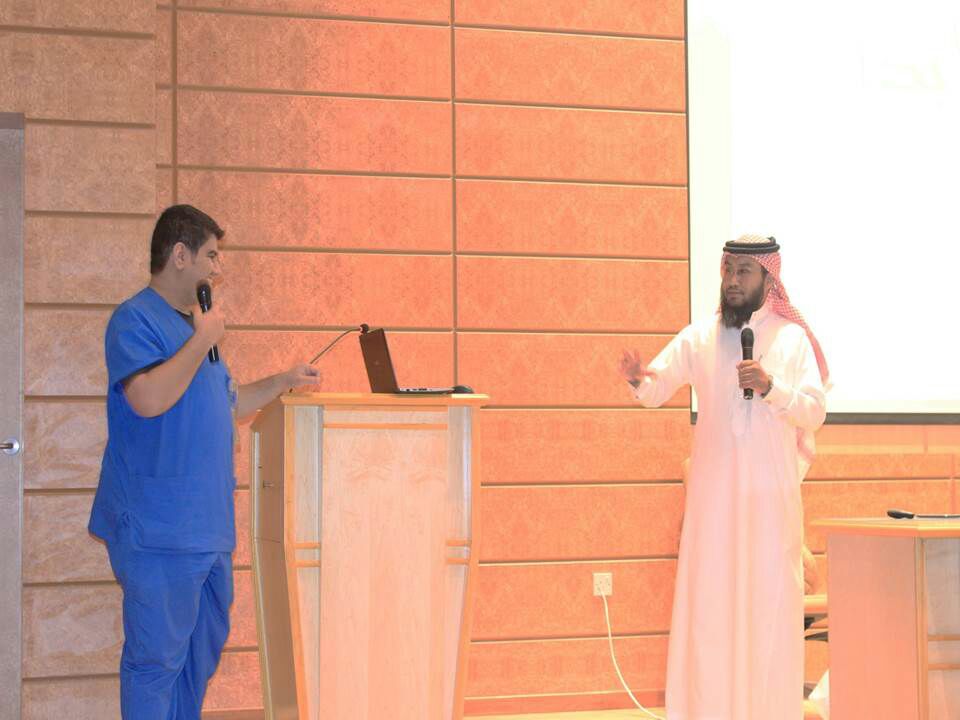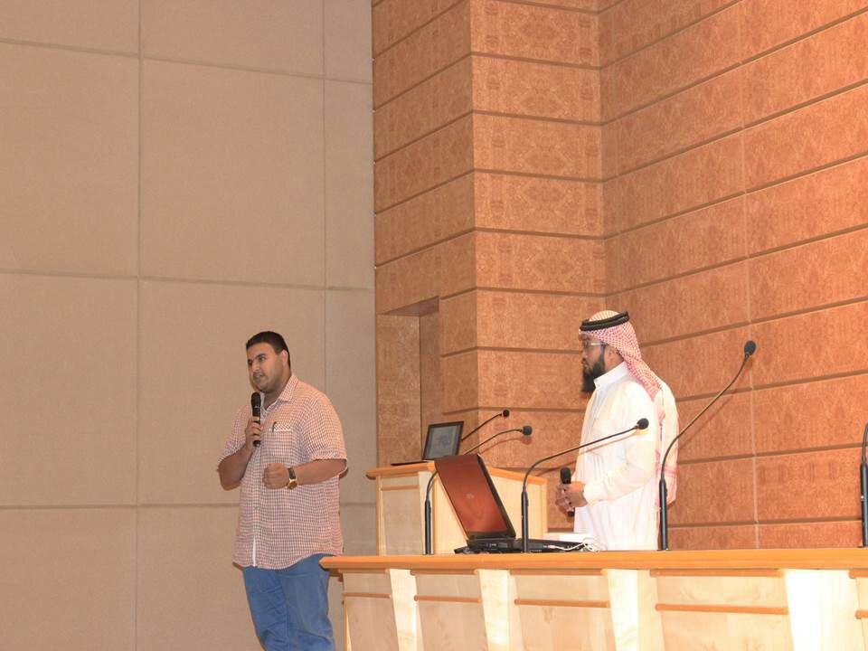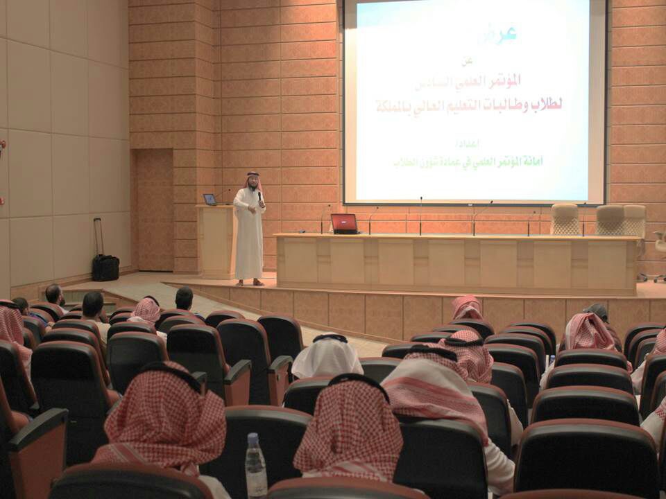 أقامت عمادة شؤون الطلاب ممثلة في أمانة المؤتمر العلمي لقاءين تعريفيين لطلاب كليات الخرج بمسرح كلية العلوم والدراسات الإنسانية ومسرح كلية الهندسة، وذلك يومي الثلاثاء والأربعاء 21-22/11/1435هـ، حيث قدم اللقاء الأمين العام للمؤتمر الدكتور / عمر بن محمد دين عرّف فيها بالمؤتمر العلمي السادس ومحاوره وكيفية المشاركة في محاوره المختلفة، ووضح أهمية المشاركة في مثل هذه المؤتمرات الطلابية لما فيها من تحفيز للابتكار و الابداع و اثراء لروح البحث العلمي لدى الطلاب.وقد قدم الدكتور عمر عرضاً مرئياً شرح فيه طريقة المشاركة في المؤتمر وطرق تقديم المشاركات، مع توضيح كامل لمحاور المشاركة والجوائز المقدمة من الجامعة للطلاب الفائزين في المؤتمر و التي تتعدى 200,000 ريال.و قد حضر عدد من الطلاب الذين شاركوا في المؤتمر العام السابق لشرح تجاربهم الشخصية للطلاب الاخرين والإجابة على اسئلتهم الخاصة بالمؤتمرالعلمي السادس بجدة .الجدير بالذكر أن لقاء مسرح العلوم كان مخصصاً لطلاب كليات الطب والصيدلة والعلوم الإنسانية والتربية، ولقاء كلية الهندسة كان مخصصاً لطلاب كلية الهندسة وهندسة وعلوم الحاسب وإدارة الأعمال والعلوم الطبية التطبيقية.وقد ساند في الإعداد والتحضير لهذين اللقاءين الأستاذين عمر العبدالله وسلطان العنزي، ومجموعة من الطلاب المساندين لأمانة المؤتمر وهم: أحمد بهيان، ومحمد ممدوح سابق وعلي الغنيم وسعد القاسم.