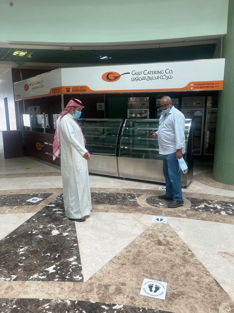 استعداداً لاستقبال الطلاب والطالبات بالعام الجامعي الجديد وتطبيقاً للإجراءات الاحترازية للحد من تفشي فيروس كورونا (كوفيد-19) وجهت عمادة شؤون الطلاب الشركات المشغلة لمراكز الخدمات الطلابية بكليات البنين بتهيئة منافذ البيع من حيث وضع ملصقات لتحقيق التباعد بين الطلاب وكذلك توفير المعقمات ووسائل الدفع الإلكترونية , كما شددت على أهمية تقيد مقدمي الخدمات بمنافذ البيع بكافة وسائل السلامة الصحية من حيث لبس الكمامة والقفازات.
