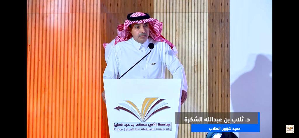 ذكر عميد شؤون الطلاب الدكتور ثلاب بن عبدالله الشكرة في كلمته اليوم خلال تدشين فعاليات الملتقى العلمي لطلاب وطالبات الجامعة لهذا العام أننا نحتفل اليوم في جامعة الأمير سطام بن عبدالعزيز وبتوجيه ومتابعة من سعادة رئيس الجامعة الدكتور عبدالرحمن بن هلال الطلحي وبمتابعة وكيل الجامعة للشؤون التعليمية والأكاديمية الدكتور مشاري العصيمي حرصنا هذا العام أن تكون محاور الملتقى منبثقة من برنامج "تنمية القدرات البشرية" الذي أطلقه ولي العهد صاحب السمو الملكي الأمير محمد بن سلمان حفظه الله ضمن رؤية المملكة 2030؛ حيث الملتقى هذا العام متنوعاً في موضوعاته سواء مايتعلق بالجانب الطبي، أو الهندسي، أو الرياضي، أو الأفلام التوعوية ، وهي بلا شك مناخ خصب سيمكن الطلاب والطالبات من تحويل ماتعلموه خلال رحلتهم الدراسية ؛ لجهد يُناقش ويجوّد من خلال برنامج علمي رصين، وبإذن الله سيتحول لمبادرات نوعية و لابتكارات ومشاريع علمية تفخر بها الجامعة وتعود بالنفع لمجتمعهم.