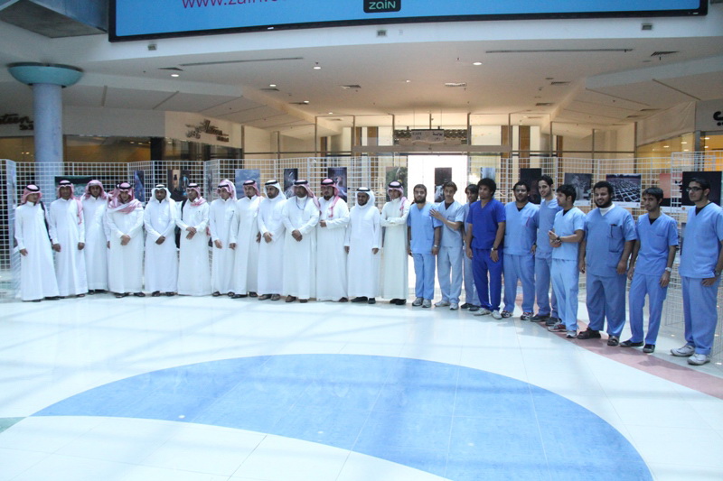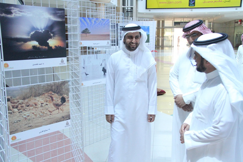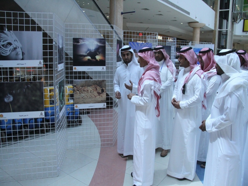 والمشرف على المعرض الآستاذ راشد العسكر ورئيس مجموعة الخرج للتصوير الضوئي الأستاذ إبراهيم التميمي وعدد من طلاب الجامعة