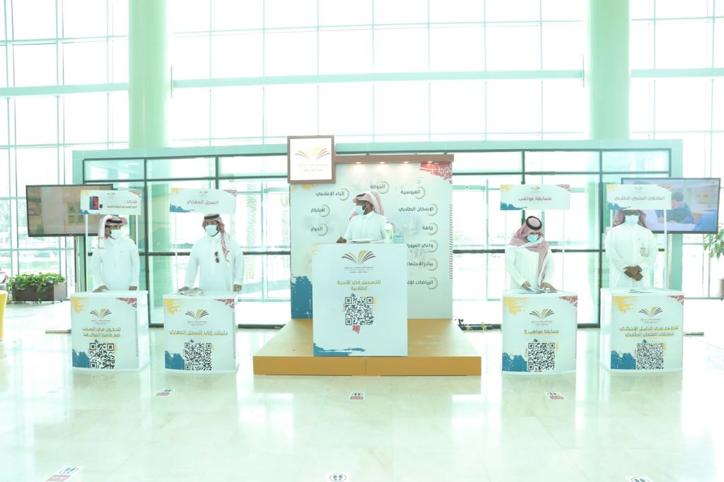 حيث اطلع الشكرة على الأركان التعريفية بالأنشطة والأندية الطلابية والملتقيات والمسابقات التي تنظمها عمادة شؤون الطلاب وكيفية الاستفادة منها وآلية التواصل مع الطلاب بهدف استقطابهم وتشجيهم وإبراز مهاراتهم.
