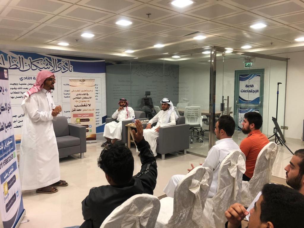 كما ذكر الدكتور عبدالله بأنه هذه المحاضرة تأتي ضمن سلسة برامج وفعاليات نادي الإسكان الطلابي خلال هذا الفصل الدراسي , حيث تنوعت تلك البرامج بين الثقافية والاجتماعية والرياضية والمبادرات التطوعية , بهدف استثمار طاقات الشباب بالإسكان الطلابي وتنمية مهاراتهم .