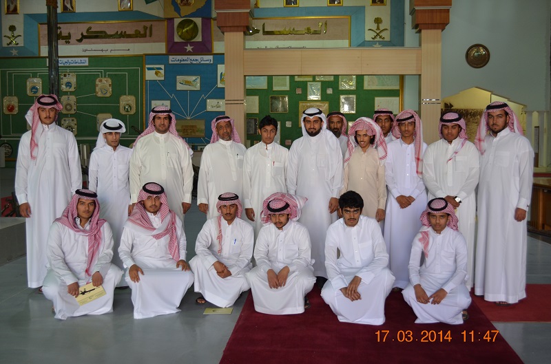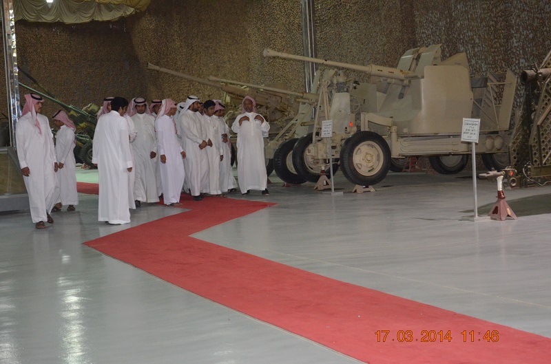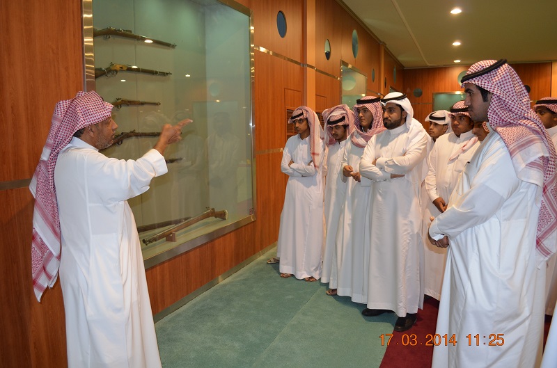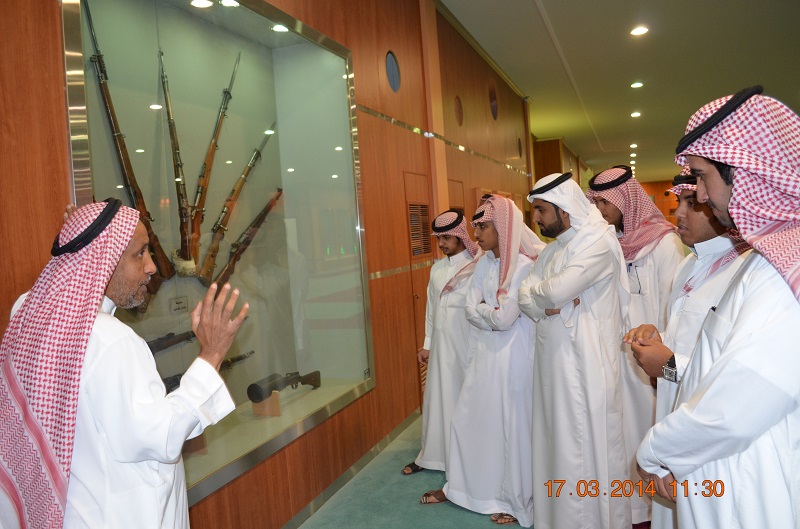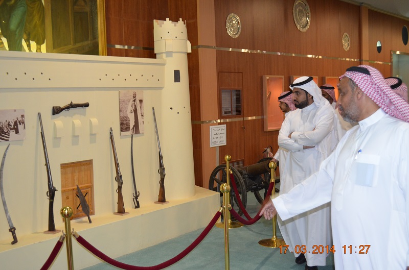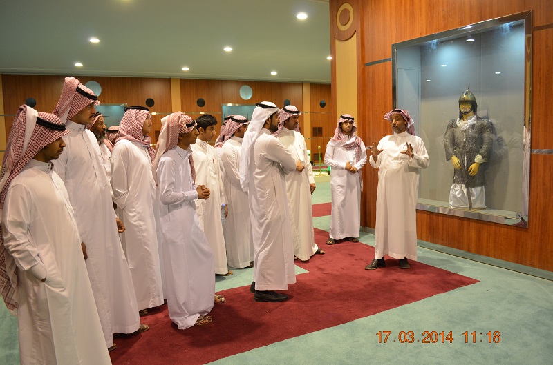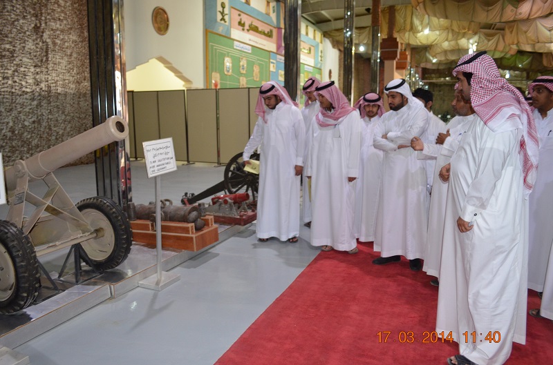 ثم انطلق الطلاب بجولة على أركان المتحف اطلعوا على ما يحتويه من الأسلحة الخاصة بالملك عبدالعزيز طيب الله ثراه، وبعض الأسلحة القديمة التى ترجع ملكيتها للدولة العثمانية وما قبلها وبعض الملبوسات والدروع التي كانت تلبس في المعارك آنا ذاك.