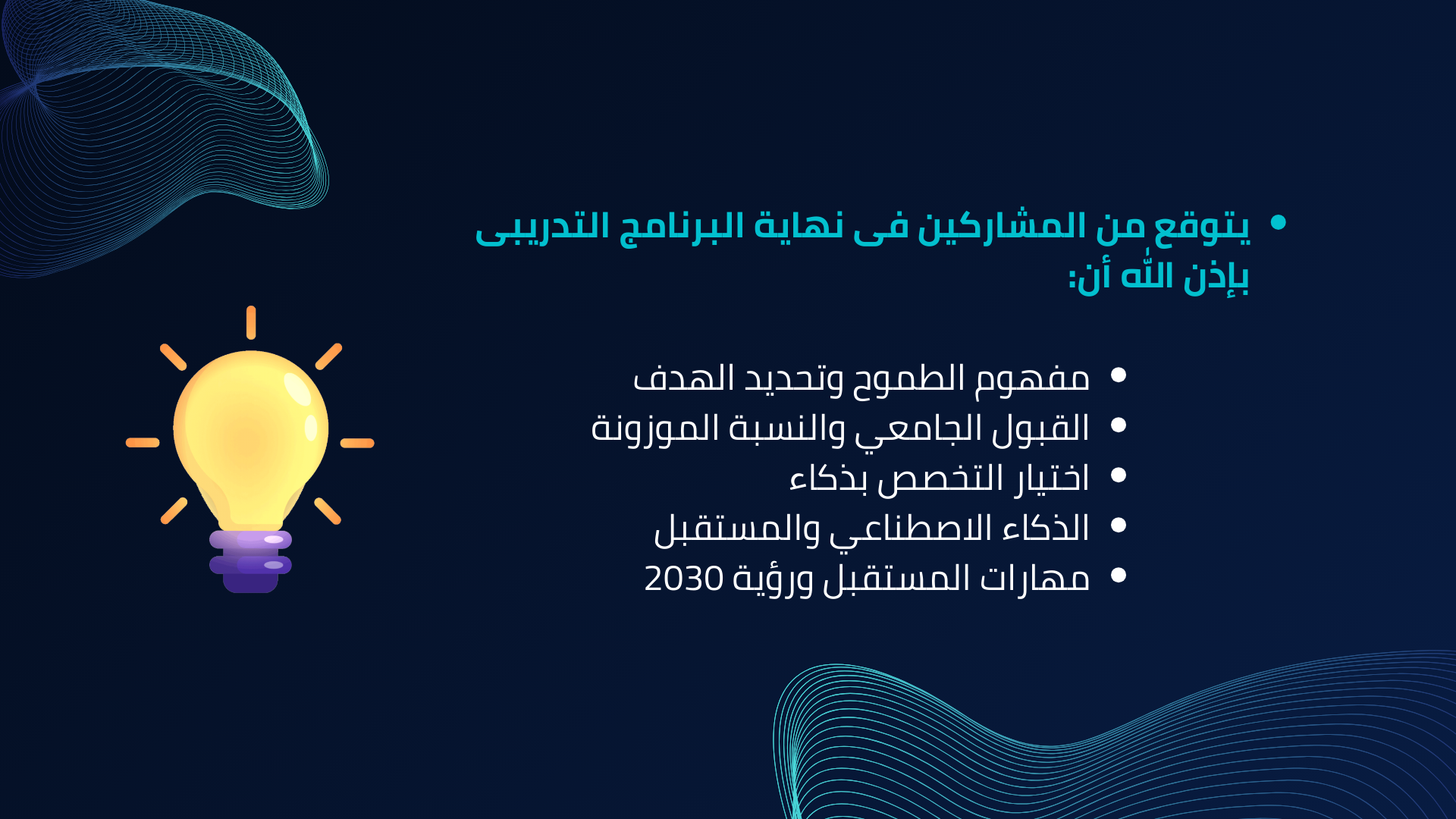 وربط البرنامج بين الطموح الفردي ومستهدفات رؤية المملكة 2030، التي تعزز دور الشباب وتمكينهم، وتؤكد أهمية الاستثمار في قدراتهم بوصفهم الركيزة الأساسية للتنمية وصناعة التغيير.