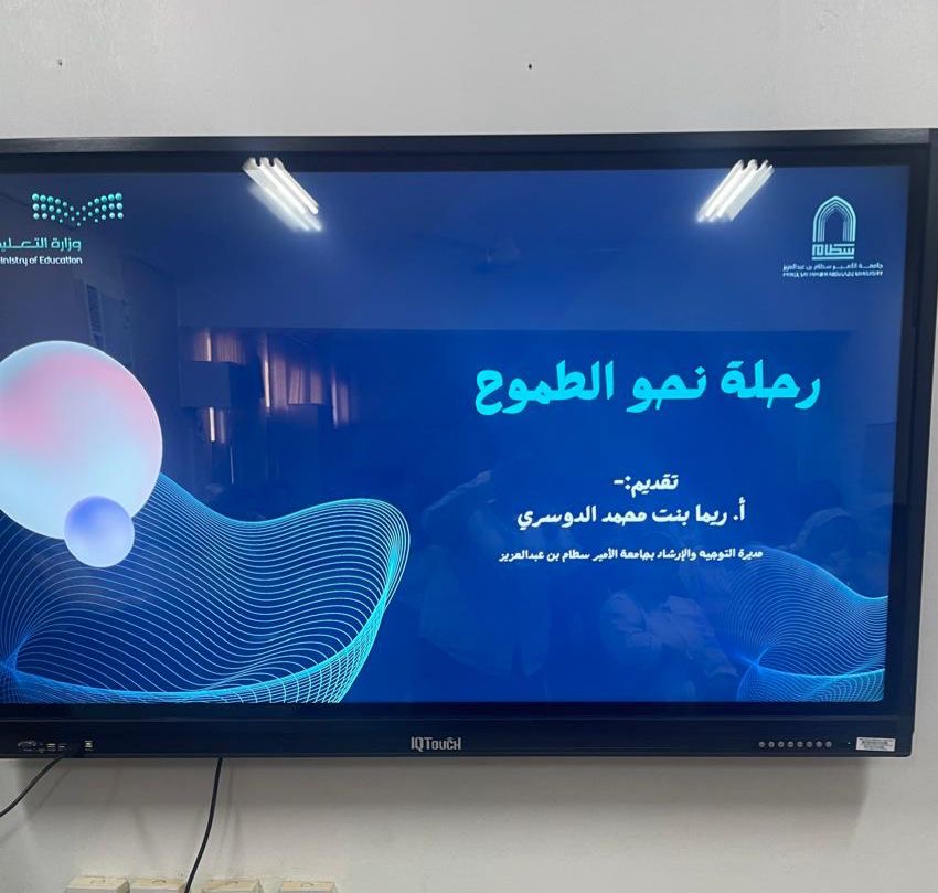 أقامت وحدة التوجيه والإرشاد بعمادة شؤون الطلاب برنامجًا توعويًا بعنوان "رحلة نحو الطموح"، وذلك يوم الاثنين الموافق 7 رمضان 1447هـ، في الساعة العاشره صباحا في متوسطة وثانوية الناصفة للبنات بالخرج قدمته الأستاذة ريما بنت محمد الدوسري؛ رئيس وحدة التوجيه والإرشاد بالعمادة.