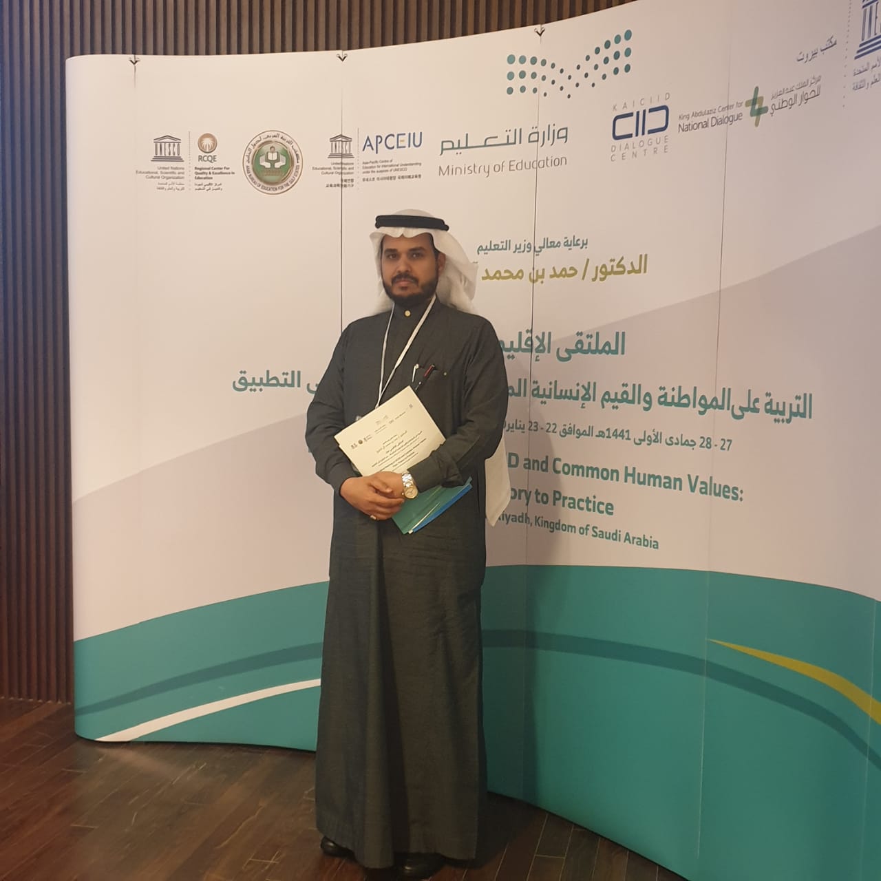 شارك في الملتقى المشرف على وحدة الوعي الفكري وتعزيز القيم الدكتور خالد بن مطر السهلي , حيث يهدف الملتقى الذي يشارك فيه خبراء دوليون وإقليميون ومحليون إلى تقديم دراسات وورش عمل حوارية تخصصية لعرض الممارسات الفضلى (الدولية والإقليمية)، وإدماج قيم المواطنة في المناهج الدراسية والممارسات التعليمية، كذلك عرض السياسات التربوية، والاتجاهات والإصدارات الحديثة في مجال التربية على المواطنة والقيم الإنسانية المشتركة، وعرض التجارب العربية والإقليمية والدولية بإدراج مفاهيم التربية على المواطنة والقيم الإنسانية المشتركة ضمن مناهج إعداد المعلمين، ووضع تصور حول آليات المتابعة وقياس جودة التطبيق، إضافة إلى عرض محتوى المقرر الإلكتروني على شبكة الإنترنت في التربية على المواطنة والقيم الإنسانية المشتركة، وتحديث وتوسيع الشبكة العربية في التربية ومركز معلومات التعليم من أجل المواطنة والقيم الإنسانية المشتركة.