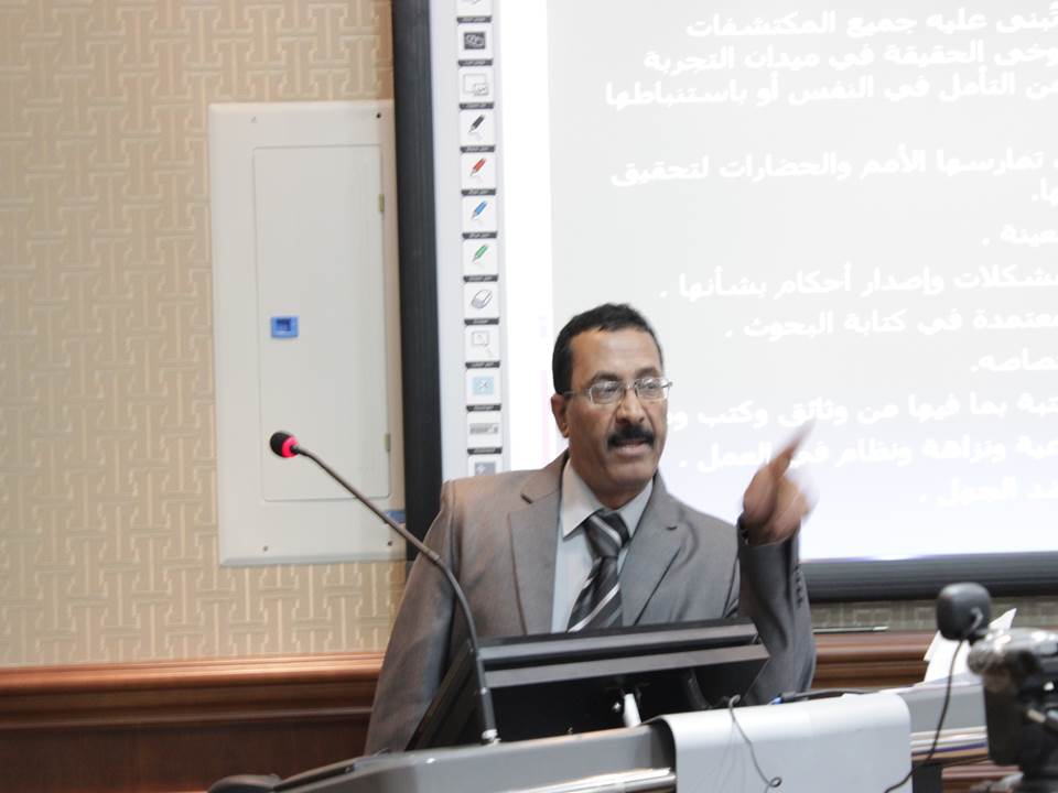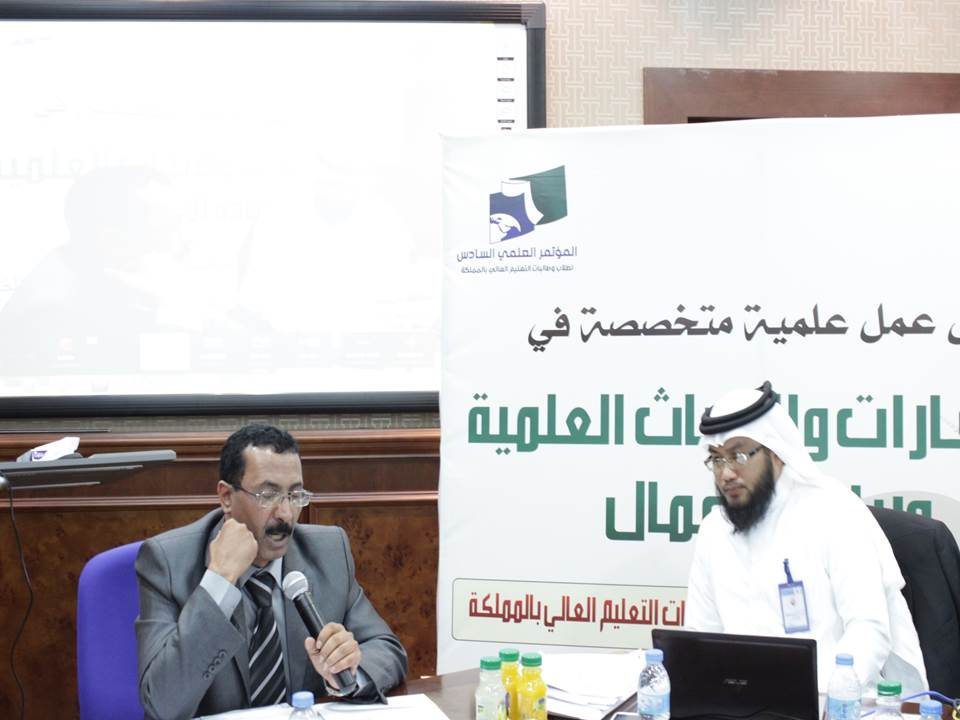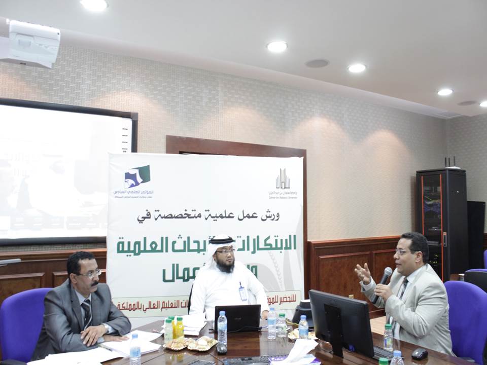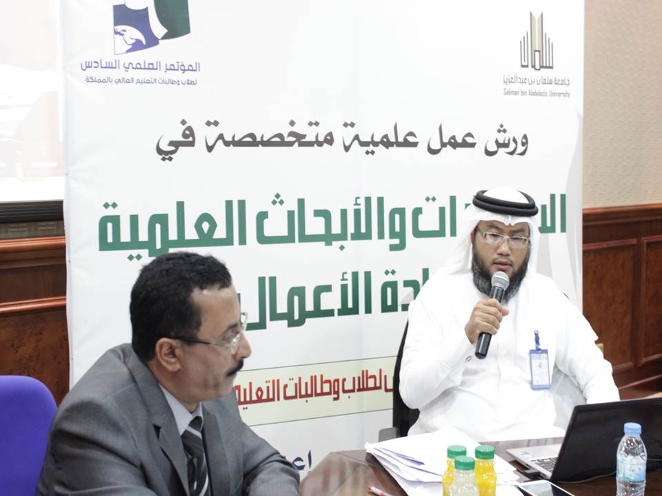 أقامت أمانة المؤتمر العلمي بعمادة شؤون الطلاب ورشة عمل علمية متخصصة لمناقشة الأبحاث الإنسانية والاجتماعية المقدمة للمؤتمر العلمي السادس لطلاب وطالبات التعليم العالي بالمملكة، وكان عنوان الورشة (المنهجية العلمية الحديثة للأبحاث الإنسانية والاجتماعية)، نوقشت فيها أكثر من سبعين ملخصاً بحثياً مقدماً للمشاركة في المحور الإنساني وأبدى فيه المختصون وجهات نظرهم للتقويم الأولي للأبحاث وتعديلها وتوجيهها لتخرج مشرقة منافسة على مستوى المملكة.وأقيمت الورشة يوم الأحد الموافق 15صفر1436هـ، في مركز التدريب بإدارة الجامعة للطلاب، وفي مبنى الهداية للطالبات، كما حضرها عبر البث المباشر على موقع لايف ستريم العالمي جميع الطلاب والطالبات المشاركين في الورشة من محافظات الحوطة والأفلاج ووادي الدواسر، واستمرت الورشة أكثر من ثلاث ساعات.وقدم للورشة الأمين العام للمؤتمر الدكتور/ عمر بن محمد دين، واستضاف فيها الدكتور/ ماجد القريات عضو هيئة التدريس في كلية التربية بالخرج، كما حضرها الدكتور/ أيمن الصواف عضو هيئة التدريس بكلية العلوم والدراسات الإنسانية بالخرج.وافتتح الورشة الدكتور عمر حيث أشار إلى أهم النقاط التي ينبغي على الباحث الاهتمام بها عند إعداد البحث للمؤتمر، وأن للمؤتمر شروطاً وضوابط لابد أن تراعى في البحث، وذكر مجموعة من الملاحظات والتوجيهات التي وقف عليها من خلال مراجعة ملخصات الأبحاث التي قدمت للورشة، ووجه الطلاب والطالبات بحسن اختيار الموضوع ومادته العلمية، ومحاولة اجتناب المواضيع المستهلكة والمنتشرة بكثرة في الساحة العلمية، كما شدد على ضرورة الاهتمام بالإخراج الفني للبحث، وحسن ترتيبه وتنظيمه لما له من الأثر البالغ في حصول البحث على تقويم عالٍ على مستوى الجامعة أو المملكة.كما ألقى الدكتور/ أيمن الصواف كلمة وضح فيها بعض التعليمات والتوجيهات العامة المتعلقة بتحكيم الأبحاث وتقويمها، موضحاً طريقة استخدام برنامج التورنت الخاص باكتشاف الاقتباسات الموجودة في الأبحاث والتقارير العلمية.بعد ذلك قدم ضيف الورشة الدكتور/ ماجد القريات عرضاً مفصلاً عن منهجية البحث العلمي في الأبحاث الإنسانية والاجتماعية، حيث تعرض للمواصفات الحديثة والعالمية في هذا المحور وما يتعلق بها من أسس وقواعد عامة وخاصة في جميع أجزاء البحث، وقد أشار إلى ضرورة مراعاة جميع القواعد والأساسيات في فصول البحث ومطالبه وما يتعلق به من مصادر ومراجع وهوامش وتعليقات وغير ذلك.ثم ناقش أعضاء هيئة التدريس المختصين ملخصات الأبحاث العلمية، وأبدوا وجهات نظرهم فيها، ووجهوا الطلاب إلى تحسينها وتنقيحها عند التقديم النهائي للمؤتمر، كما استمعوا إلى المداخلات من الحضور وكذلك من القاعة النسائية بمبنى الهداية، واستمعوا كذلك إلى المداخلات الواردة من اتصالات المستمعين عبر البث المباشر من المحافظات التي تقع عليها فروع الجامعة.