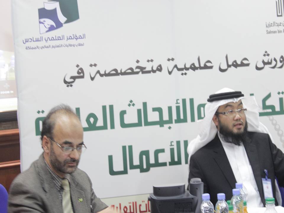 استمراراً لمرحلة التدريب والتأهيل للطلاب ومشاركاتهم العلمية والثقافية للتحضير لإقامة المؤتمر العلمي السادس بالجامعة، ثم المشاركة في المؤتمر العلمي السادس بجدة، أقامت أمانة المؤتمر العلمي بعمادة شؤون الطلاب ورشة عمل علمية بعنوان: (المنهجية العلمية في الأبحاث الصحية)، وذلك لمناقشة مشاريع الأبحاث الصحية المقدمة للمؤتمر، حيث استضافت أمانة المؤتمر سعادة البروفيسور/ أشرف توفيق أبوالحمد، المتخصص في الهندسة الوراثية والأحياء الدقيقة، ومساعد العميد للشؤون التعليمية بكلية العلوم الطبية التطبيقية بالخرج، وعضو المجلس العلمي بوكالة الجامعة للدراسات العليا، كما استضافت الدكتور/ شمويل أحمد يوسف، الأستاذ المشارك المتخصص في الأحياء الطبية الدقيقة، واستشاري الأحياء الدقيقة في كلية العلوم الطبية التطبيقية بالخرج، وقدم الورشة الأمين العام للمؤتمر الدكتور عمر بن محمد دين، وذلك يوم الخميس 12صفر1436هـ، حيث حضر الطلاب في قاعة التدريب بإدارة الجامعة، والطالبات في مبنى الهداية، وحضرها كذلك عبر البث المباشر على موقع لايف ستريم طلاب وطالبات الأفلاج ووادي الدواسر، واستمرت الورشة لمدة ثلاث ساعات.وقد نوقشت في هذه الورشة 35 مشروعاً بحثياً في المجال الصحي مقدمة من طلاب وطالبات الجامعة، حيث تم تقويمها مبدئياً من قبل المتخصصين، مع إبداء وجهات نظرهم في المادة العلمية المطروحة وطريقة العرض ومناقشة محاور البحث، وإيجاد الحلول للعقبات التي تواجه الطلبة عند إعدادهم لأبحاثهم الصحية.وافتتح الورشة الدكتور عمر بكلمة حث فيها الطلاب على مضاعفة الجهد في الأيام القادمة لتجهيز مشاركاتهم وتحسينها وإخراجها بصورة مشرقة ناضجة منافسة على مستوى المملكة، حيث أشار إلى أهمية تطبيق الشروط والضوابط المقررة من إدارة المؤتمر بوزارة التعليم العالي والمقننة للأبحاث والمشاركات المختلفة، وشدد على الاهتمام بالإخراج الفني للبحث، لأن ذلك له دور كبير في حصوله على تقويم جيد في التحكيم داخل الجامعة وخارجها.ثم قدم البروفيسور أشرف توفيق عرضاً وضح فيه أهمية البحث في المجال الصحي، والتطورات الجديدة في الأبحاث العلمية الصحية في العصر الحديث، وتعرض للمواصفات الحديثة والجيدة للأبحاث الصحية العالمية، كما ذكر في حديثه الطرق والوسائل التي تسهم في تحسين البحث وتأهيله للمنافسة على مستوى الجامعات السعودية.بعدها ألقى الدكتور شمويل كلمة موجزة وضح فيها كذلك المواصفات الحديثة للأبحاث الصحية، وتعرض لمجموعة من الملاحظات والانتقادات التي وقف عليها من خلال اطّلاعه على الأبحاث المقدمة من طلاب الجامعة في المحور الصحي، وحث الطلاب على تلافيها عند تقديم البحث في صورته النهائية الكاملة.بعد ذلك نوقشت المشاريع البحثية المقدمة من الطلاب والطالبات، حيث أبدى المختصون وجهات نظرهم وآراءهم لتعديل البحث وتقويمه وتأهيله للمنافسة على مستوى الجامعة والمملكة.الجدير بالذكر أن الورشة نقلت على الهواء مباشرة على موقع لايف ستريم على الرابط (http://www.livestream.com/sau_edu).
