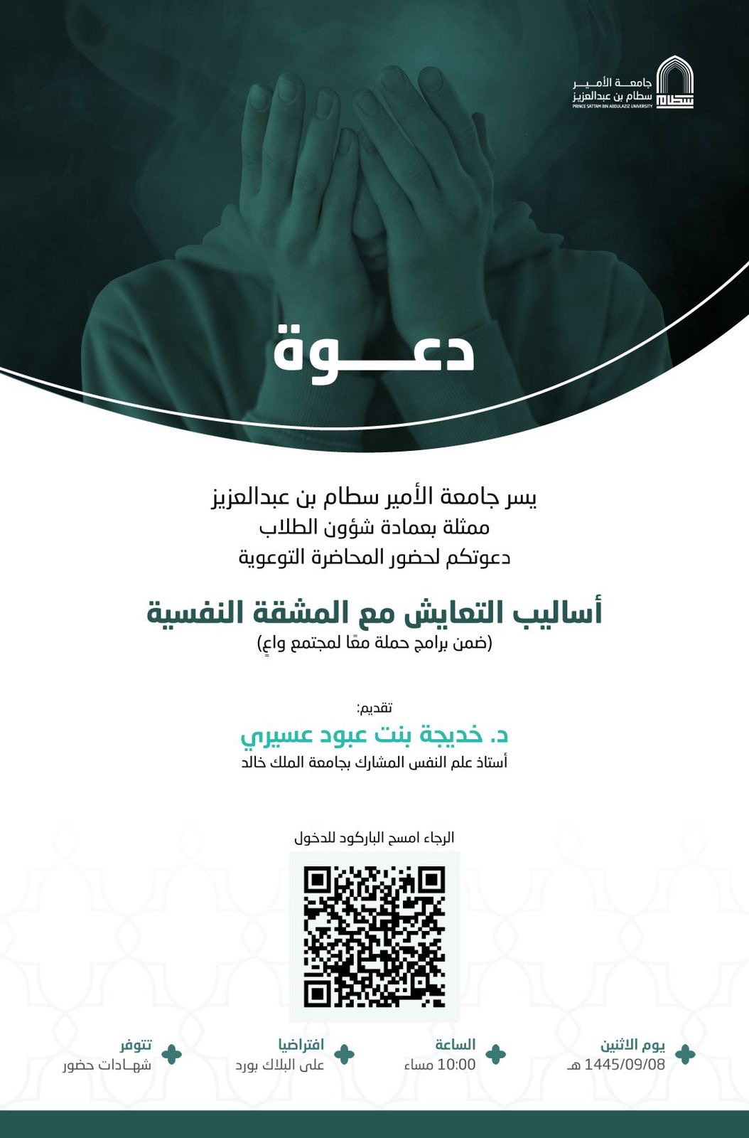 <p>The lecture, which witnessed a large attendance of students and university employees, covered various topics. It includes the causes of psychological hardship, its impact on public health and personal relationships, in addition to providing effective strategies for dealing with it. Participants were also encouraged to ask questions and participate in open discussions to exchange expertise and experiences.</p>