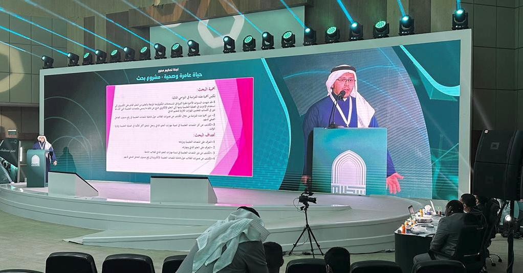 <p>The first axis "A full and healthy life" (research project); Where the arbitration committee discussed; Male and female students participating in this axis on the stage and in front of the audience, after presenting their 15 participations from the various faculties of the university.</p>