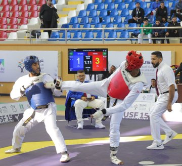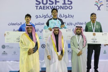 <p>Student Abdullah Khalifa from the College of Pharmacy at Prince Sattam bin Abdulaziz University achieved third place and the bronze medal in the 74kg weight category in his participation in the Saudi University Sports Federation Taekwondo Championship for the 15th sports season, which was hosted by Tabuk University during the period from January 29 to February 1, with the participation of 109 players representing 23 universities and colleges.</p>