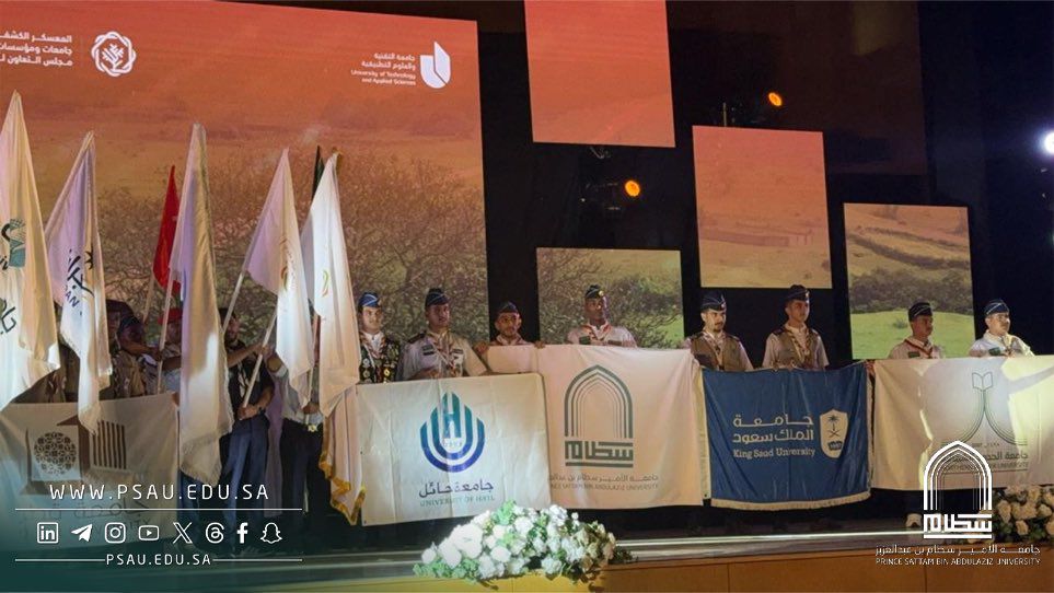 <p>Prince Sattam bin Abdulaziz University, represented by the Deanship of Student Affairs, is participating in the 14th Scout Camp for Scouts of Universities and Higher Education Institutions in the Gulf Cooperation Council countries, hosted by the Sultanate of Oman, under the slogan (Inspiration and Empowerment) and will continue until August 30. The camp, in which 250 scouts from 20 Gulf universities are participating, includes courses in leadership, safety, and technology, as well as training workshops, lectures, and dialogue sessions, in addition to sports and cultural activities, and visits to tourist and heritage sites in Dhofar Governorate. The university's participation in this camp comes from its belief in its pioneering role in activating the scouting movement, developing the physical, mental, and social capabilities of participating students, and strengthening the bonds of love and brotherhood among the youth of the Gulf Cooperation Council countries.</p>