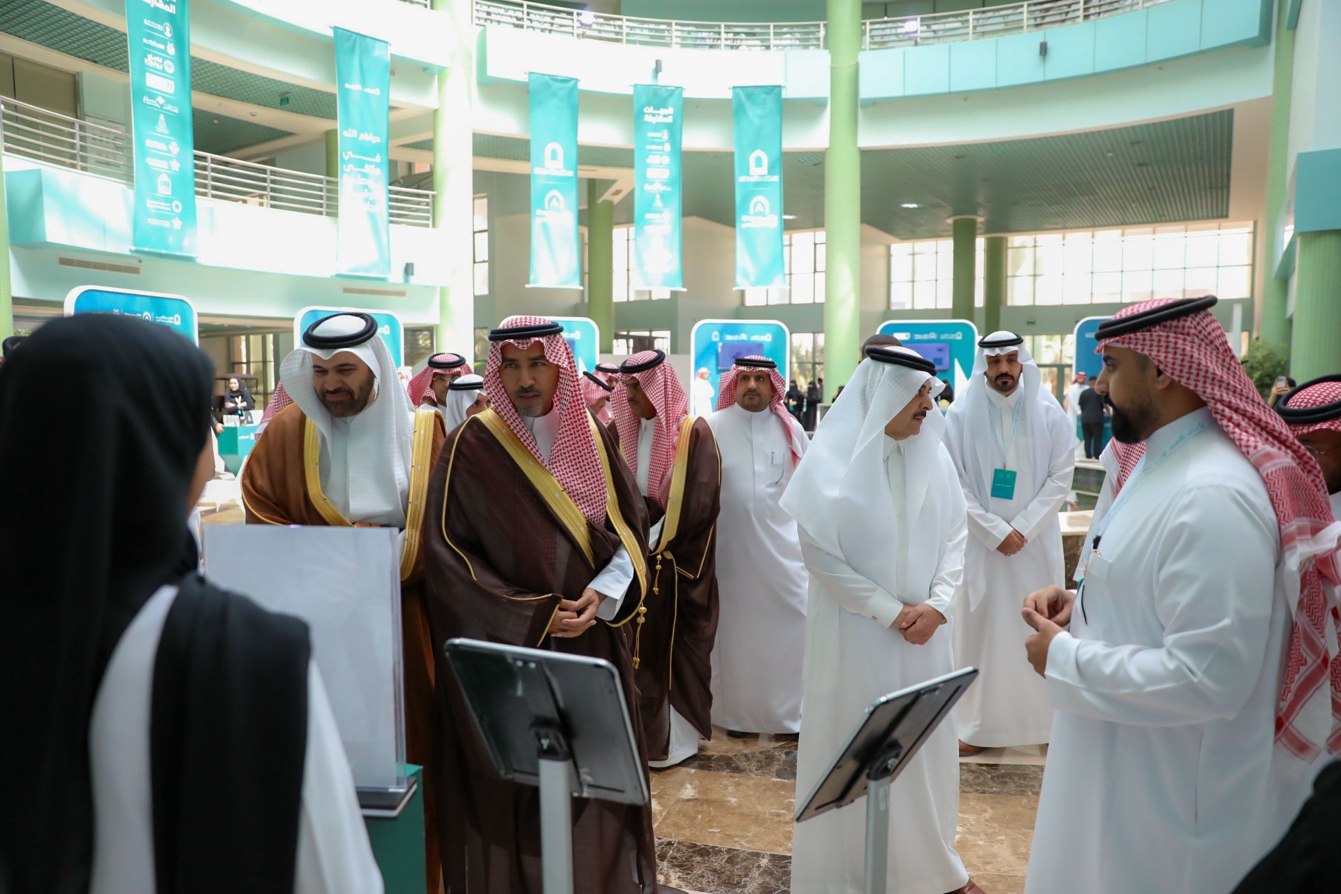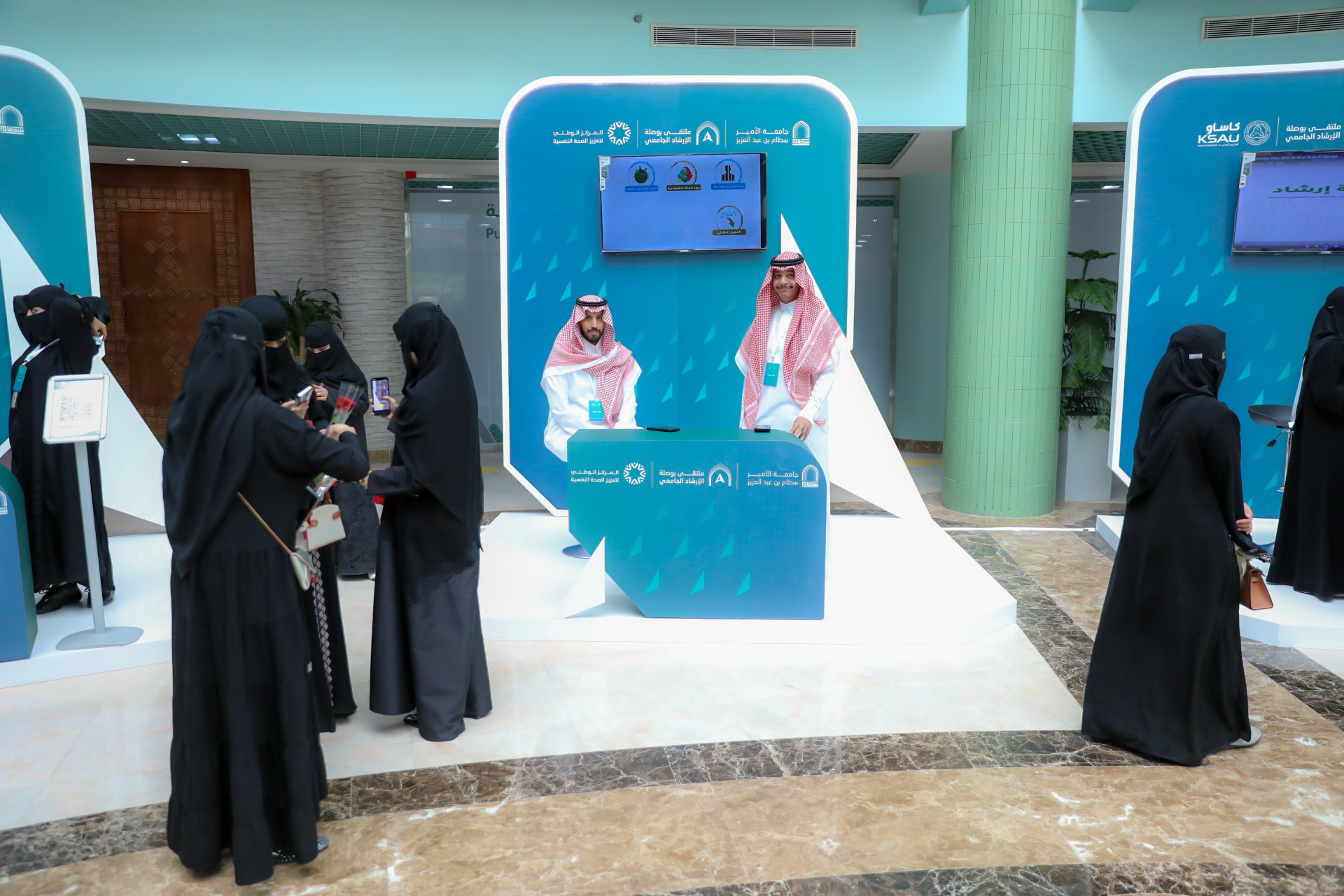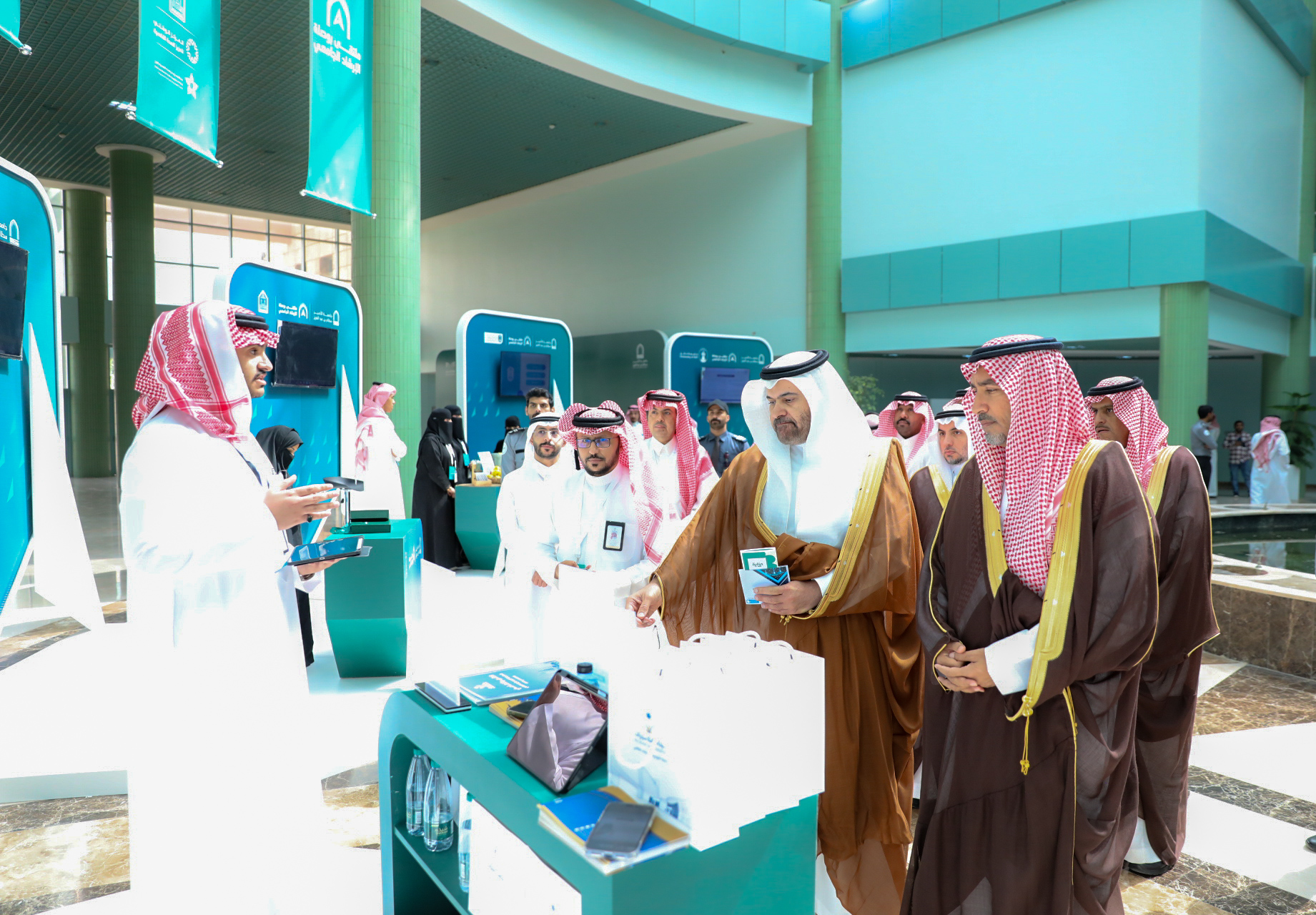 Following this, His Excellency the University President inaugurated the accompanying exhibition, which showcased the latest counseling technologies in Saudi universities and successful experiences in this field, in addition to providing consultation services from psychological and social specialists.