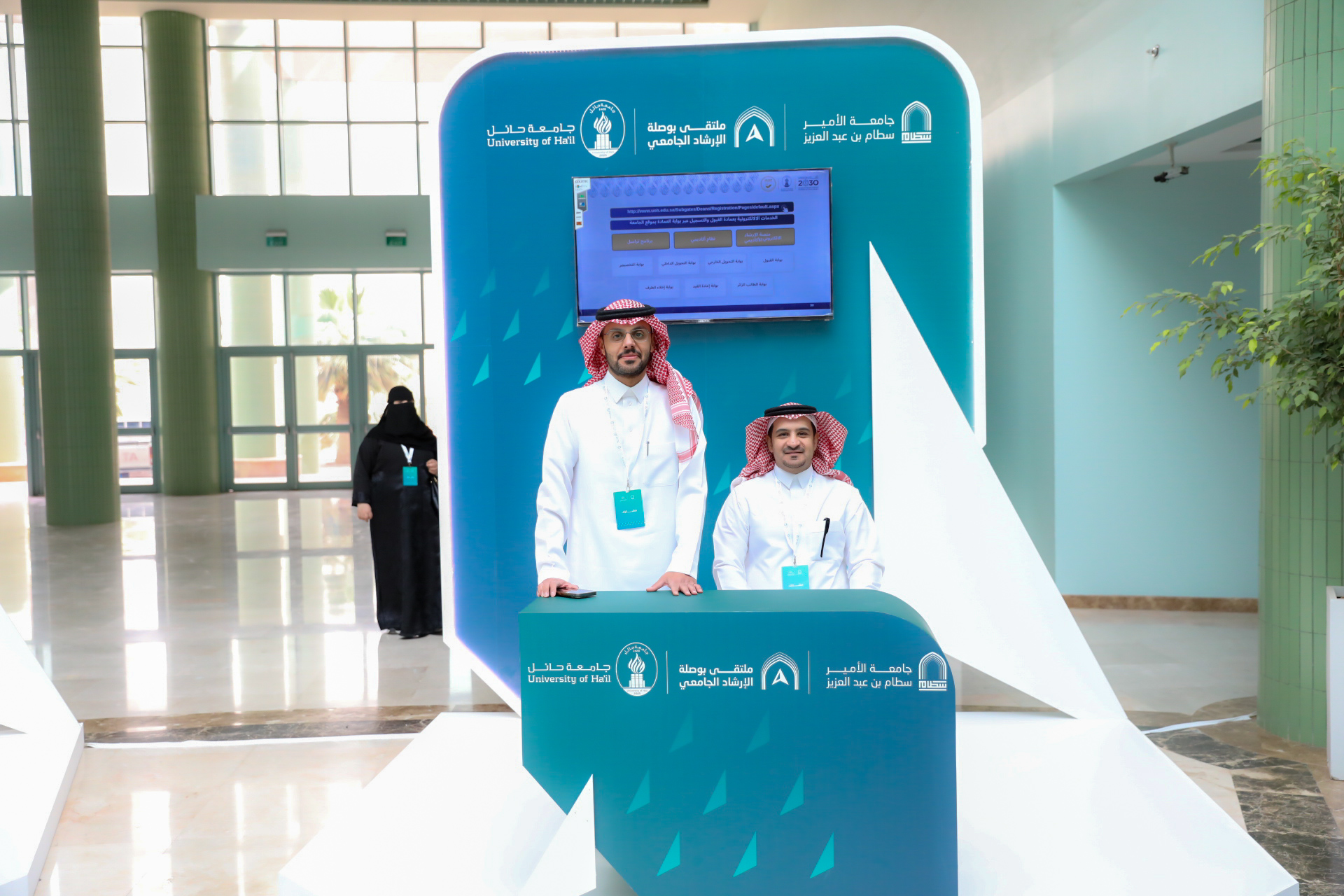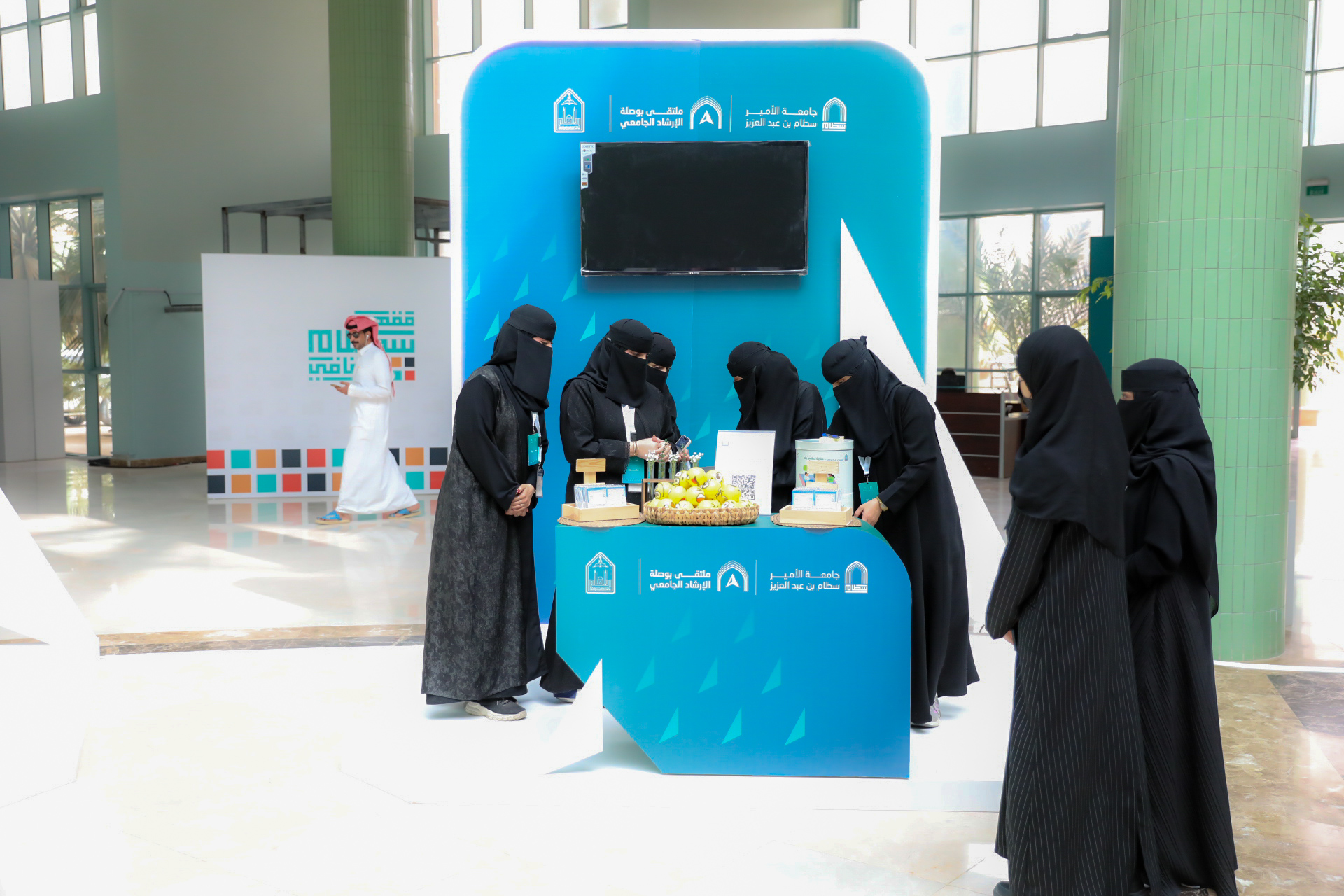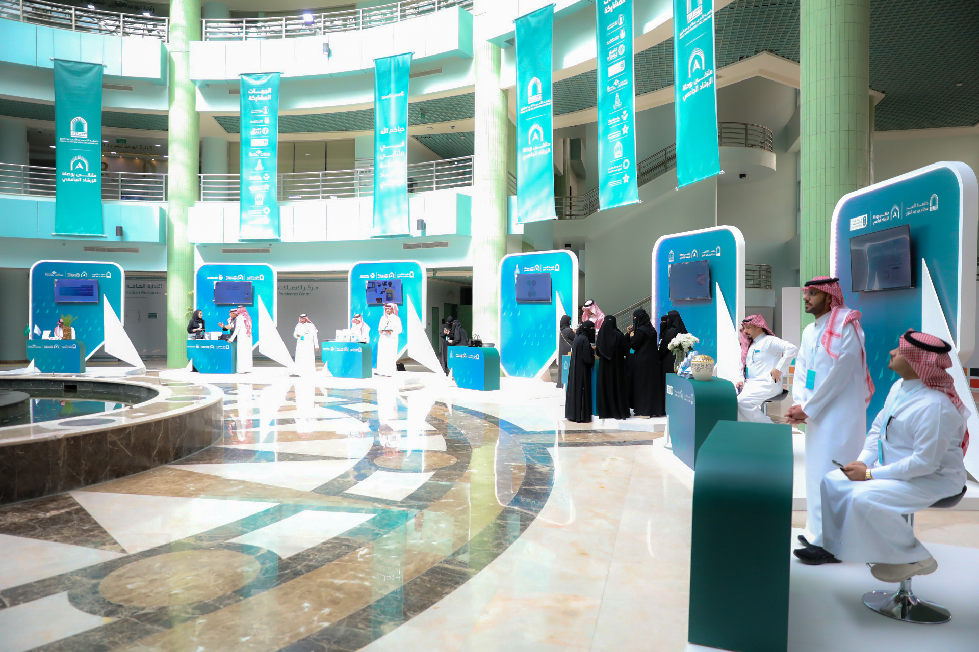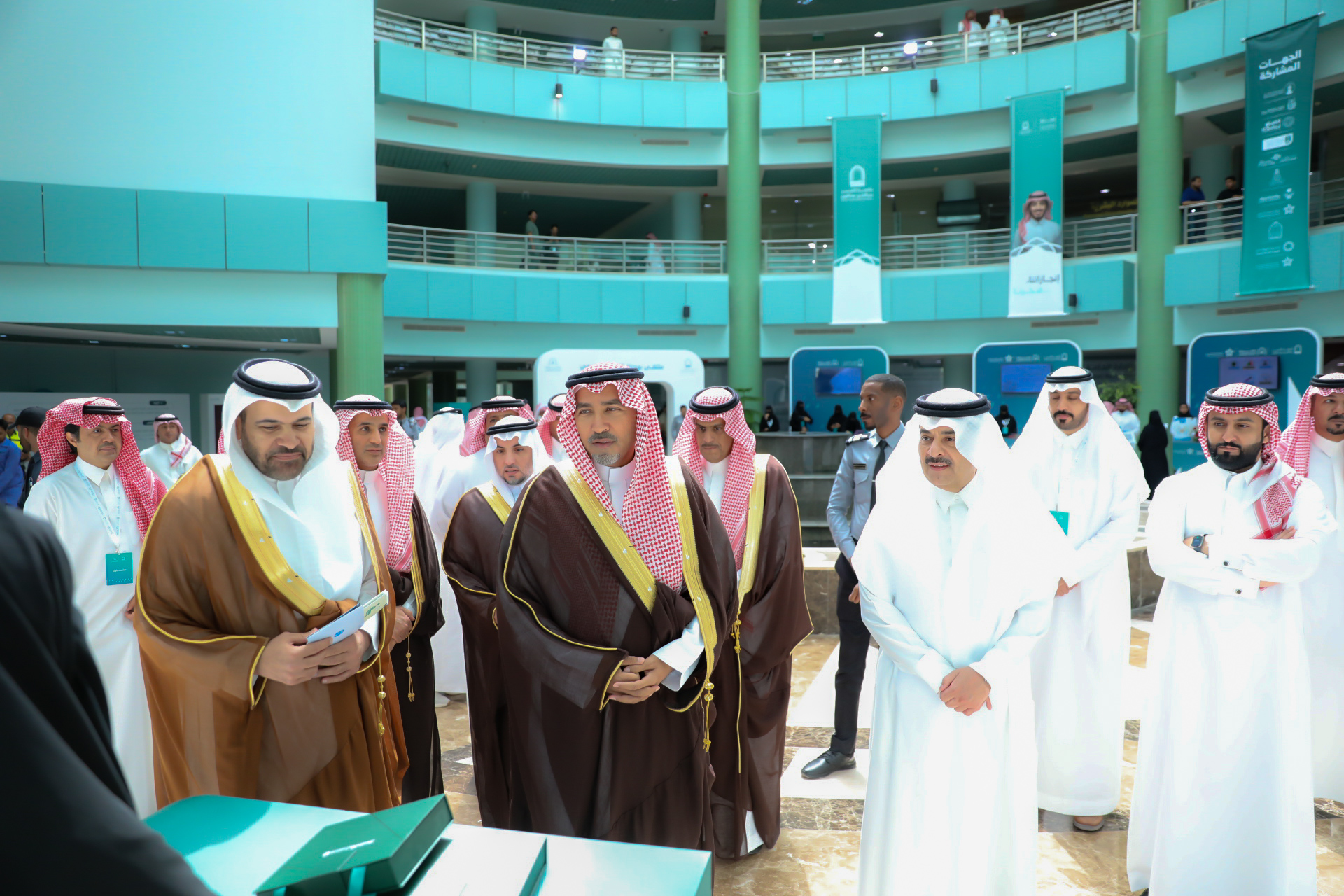 Following this, His Excellency the University President inaugurated the accompanying exhibition, which showcased the latest counseling technologies in Saudi universities and successful experiences in this field, in addition to providing consultation services from psychological and social specialists.